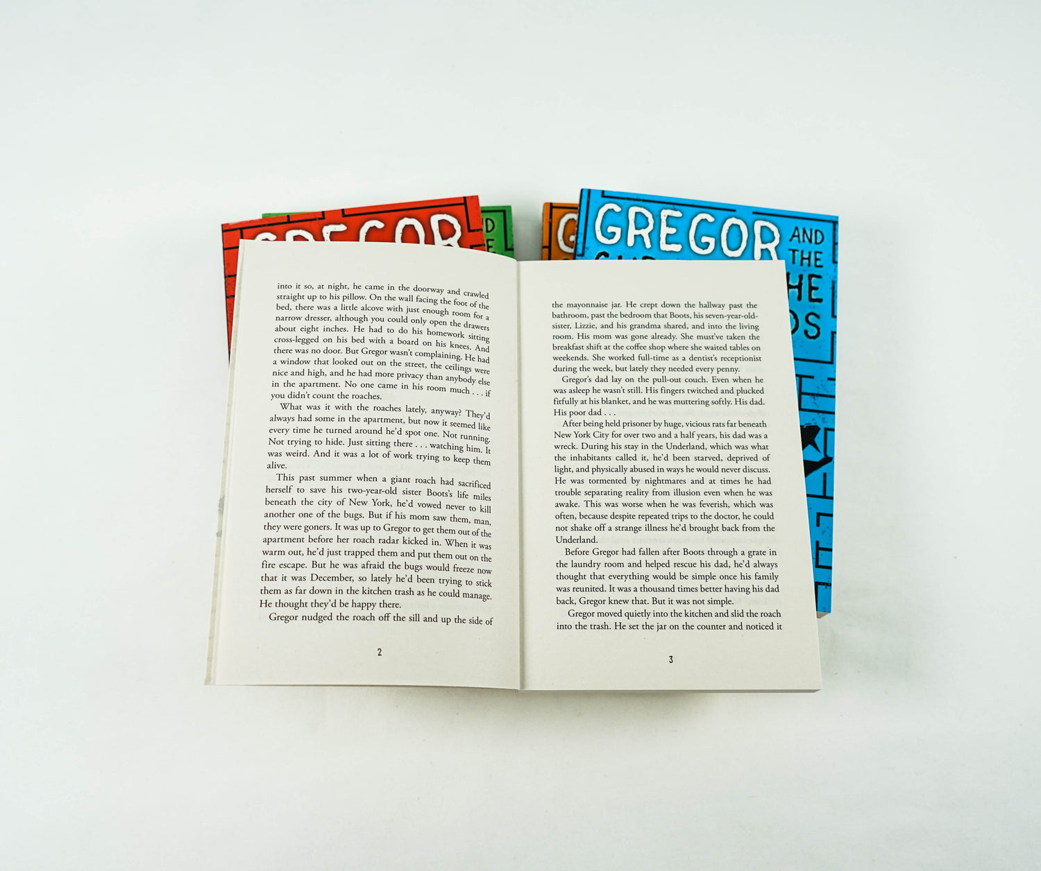 The complete box set of the five books in the New York Times bestselling series The Underland Chronicles. When Gregor follows his little sister through a grate in the laundry room of their New York apartment building, he hurtles into the dark Underland beneath the city. There, a conflict is brewing between the humans and the giant creatures that live below. Gregor must find his place in the frightening prophecies he encounters, the strength to protect his family, and the courage to stand up against an army of giant rats.