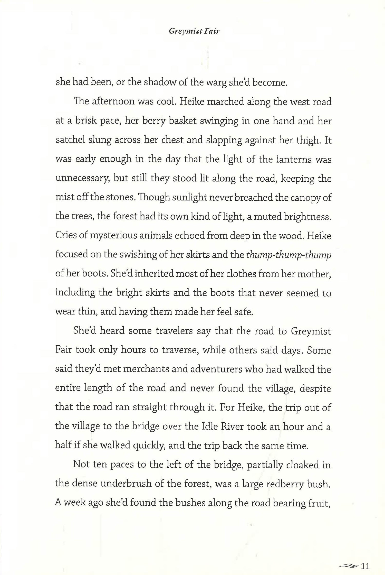 Two roads lead into a dark forest. They meet at Greymist Fair, the village hidden in the trees, a place kept alive by the families that never leave. The people of Greymist Fair know the woods are a dangerous and magical place, and to set foot off the road is to invite trouble.