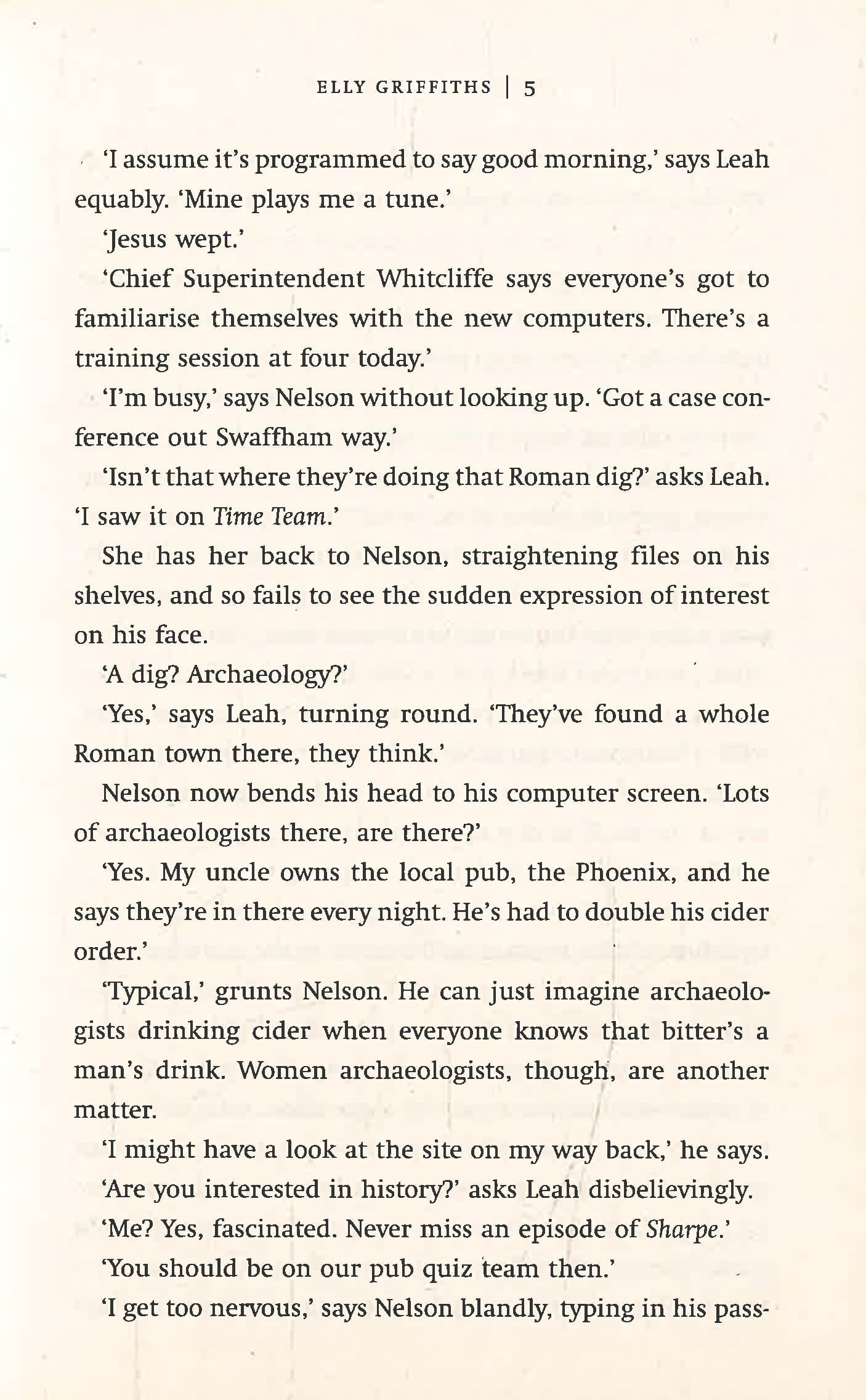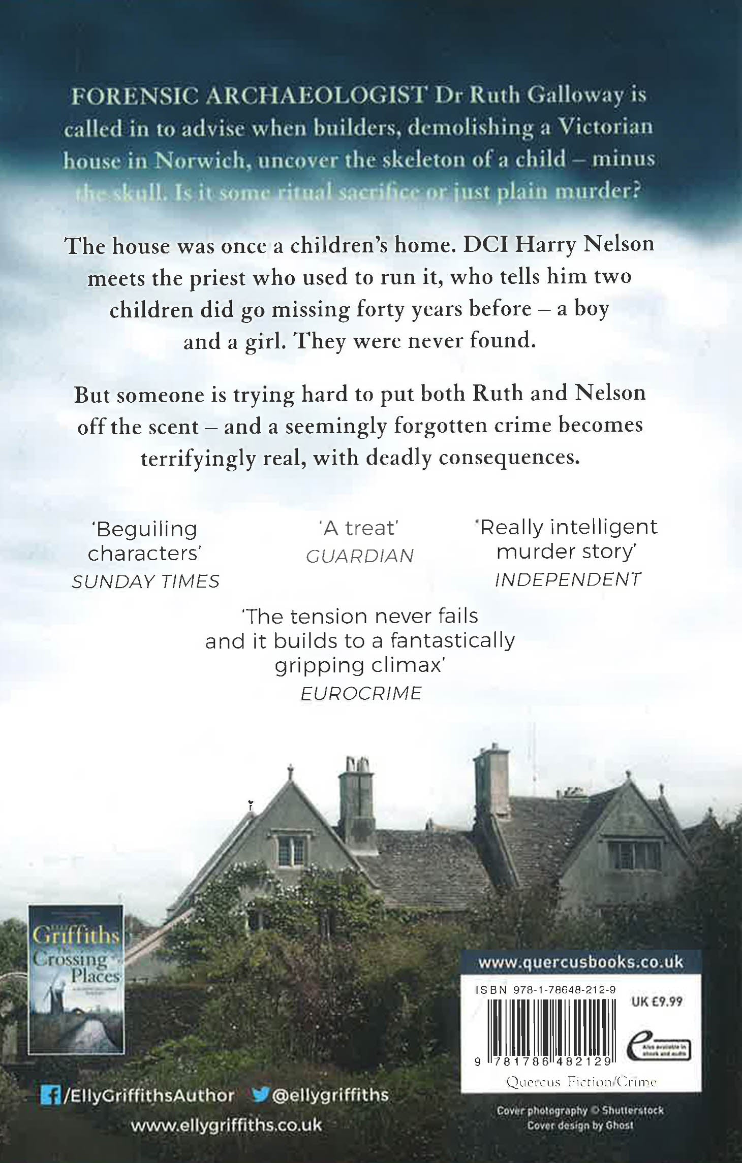 Dr Ruth Galloway's forensic skills are called upon when builders, demolishing an old house in Norwich, uncover the bones of a child - minus the skull - beneath a doorway. Is it some ritual sacrifice or just plain straightforward murder? Ruth links up with DCI Harry Nelson to investigate.
