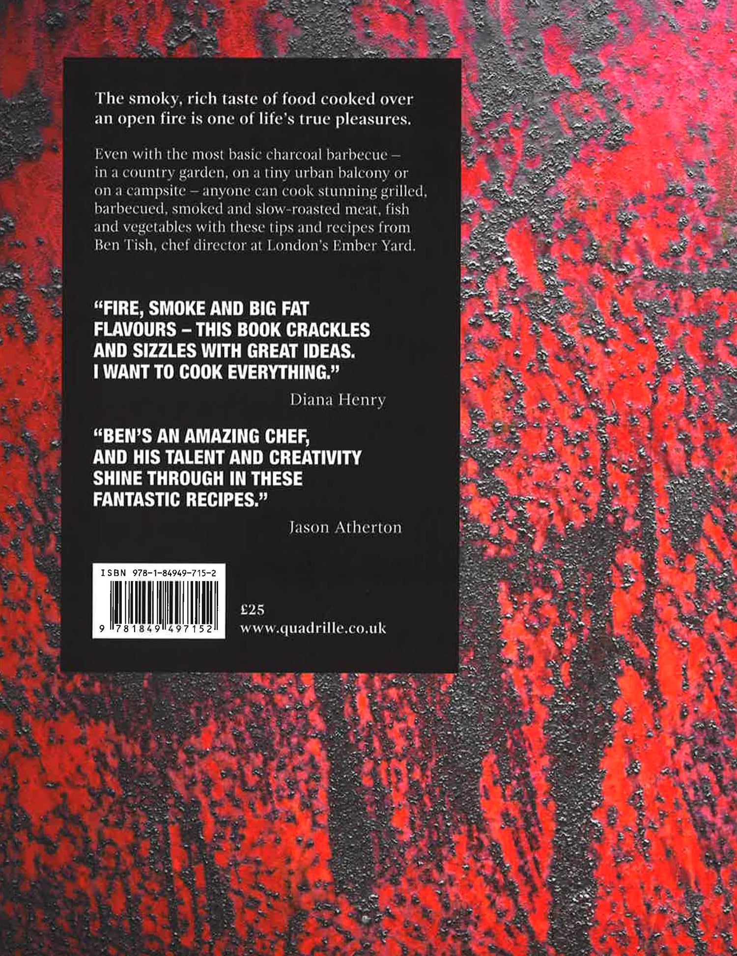 There's so much more to barbecues than sausages and burgers. At Ember Yard, chef director Ben Tish excels in creating stunning grilled, barbecued, smoked, charred and slow-roasted dishes that enhance the flavour of meat, fish and vegetables.You can make fantastic food on a barbecue, be it in a country garden, on a tiny urban balcony or on a campsite. All you need is the simplest barbecue with a lid and some charcoal, and you can make everything from pizzas to ribs, desserts and even Sunday roasts on a rainy winter's day; there's no need to wait for the summer to get the barbecue out. Try Chargrilled Duck Breast with Peas, Broad Beans and Hot Mint Sauce, Paella, Crispy Artichokes with Lemon and Sage, and amazing Smoky Bitter-Chocolate Puddings.The smoky, rich taste of food cooked over an open fire is one of life's true pleasures and these recipes will inspire you to use your barbecue for much, much more than just steak.