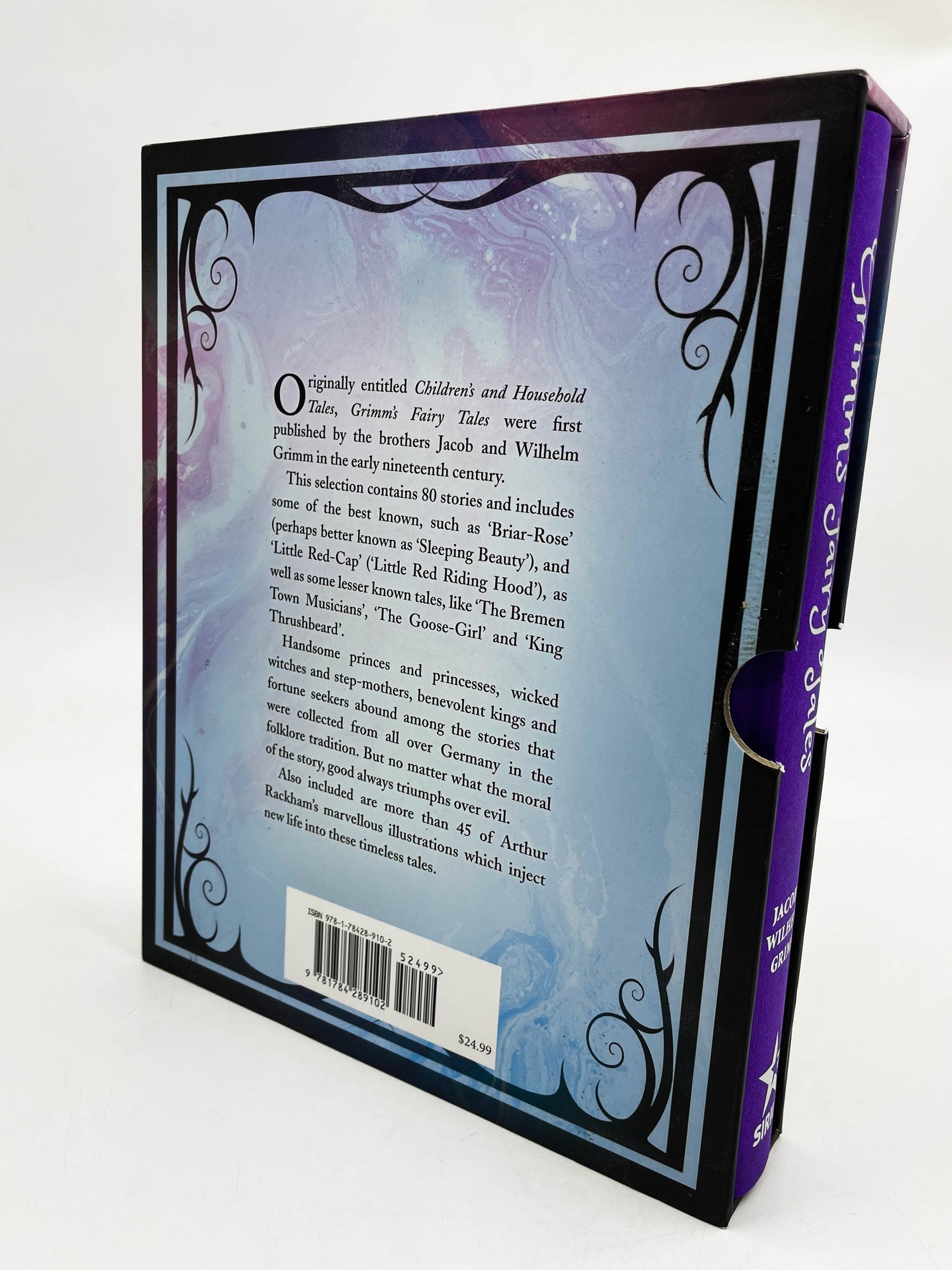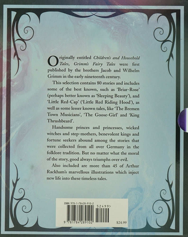 Filled with of cunning witches, dragon hoards and goblins spinning straw into gold, the tales of the Brothers Grimm are some of the most recognized and best-loved fairy tales of all time. This gorgeous slipcased treasury contains 80 of these stories, including some of the best known, such as 'Briar-Rose' (perhaps better known as 'Sleeping Beauty'), and 'Little Red-Cap' ('Little Red Riding Hood'), as well as some lesser known tales, like 'The Bremen Town Musicians', 'The Goose-Girl' and 'King Thrushbeard'. These works are featured alongside the fantastical pen and ink illustrations of acclaimed artist Arthur Rackman, bringing these brilliant tales to life.