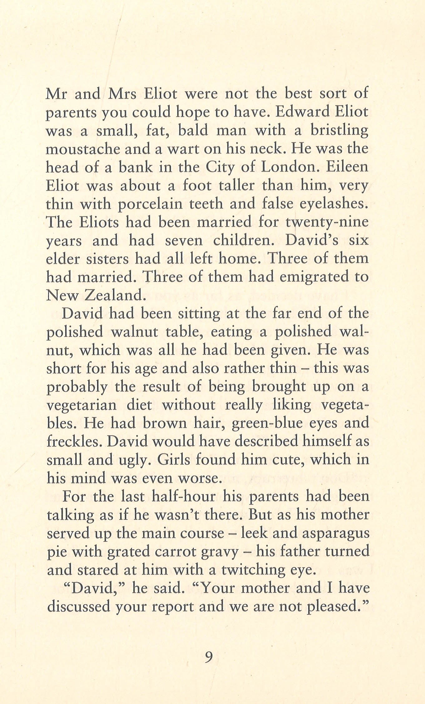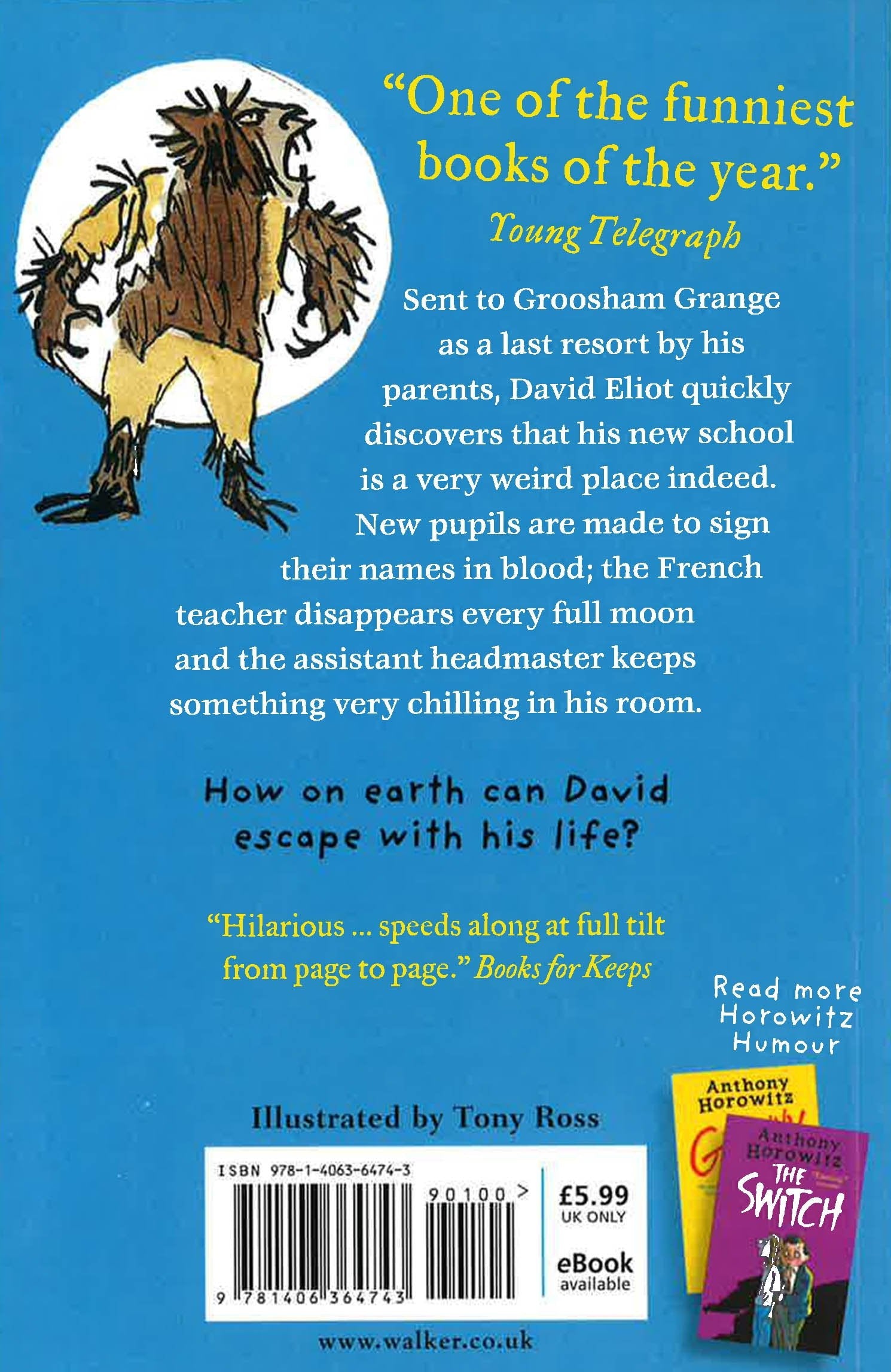 Sent to Groosham Grange as a last resort by his parents, David Eliot quickly discovers that his new school is a very weird place indeed. New pupils are made to sign their names in blood; the French teacher disappears every full moon and the assistant headmaster keeps something very chilling in his room. How on earth can David escape with his life?