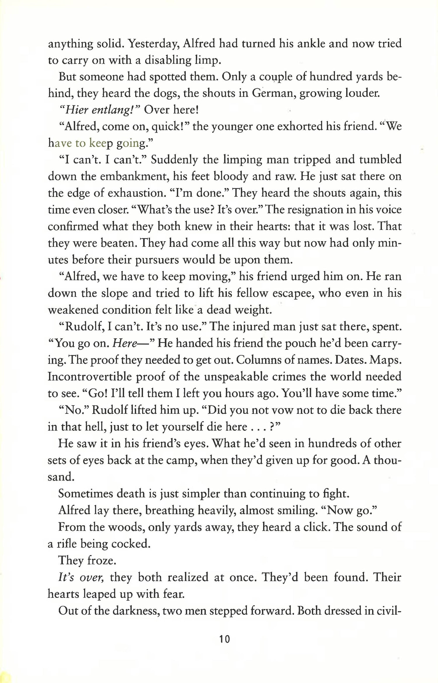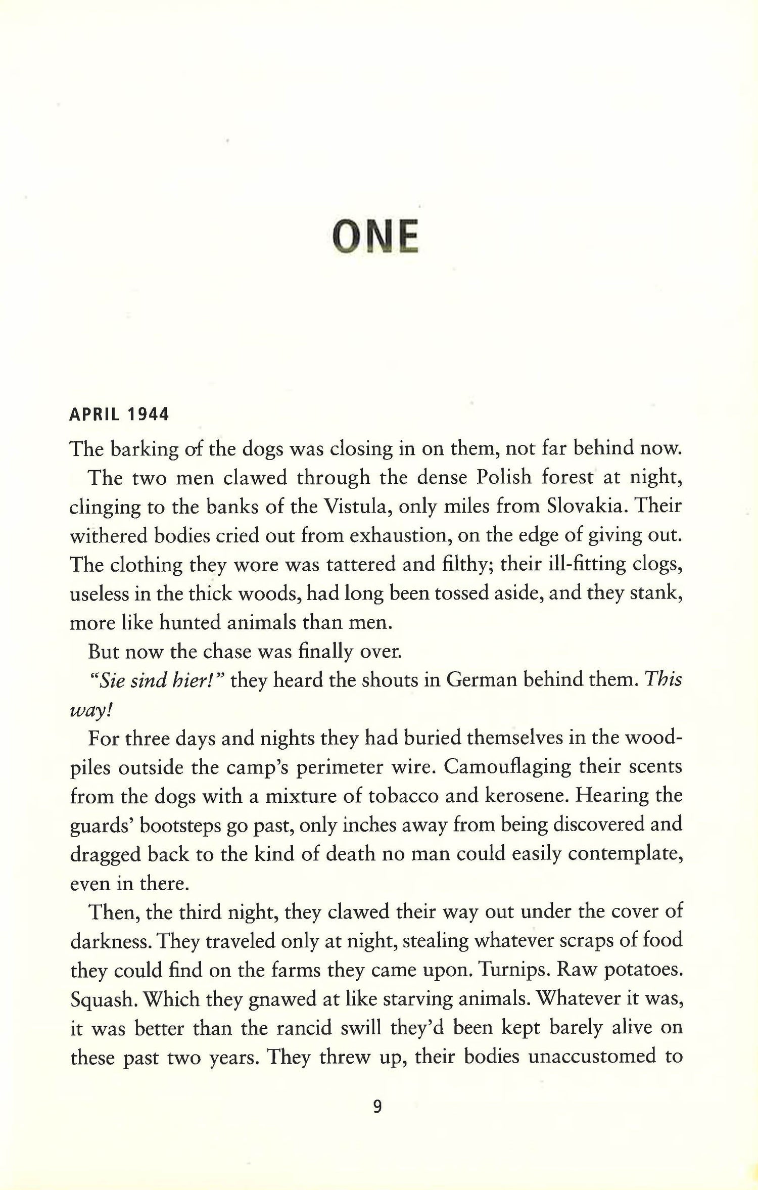 Four thousand miles away, in Washington DC, intelligence lieutenant Nathan Blum decodes messages from occupied Poland. After the Nazis murdered his family, Nathan escaped the Krakow ghetto and is determined to support his new country - and the US government knows exactly how he can. They want to send Nathan on a mission to rescue one man from a place no one can break in to - or out of.