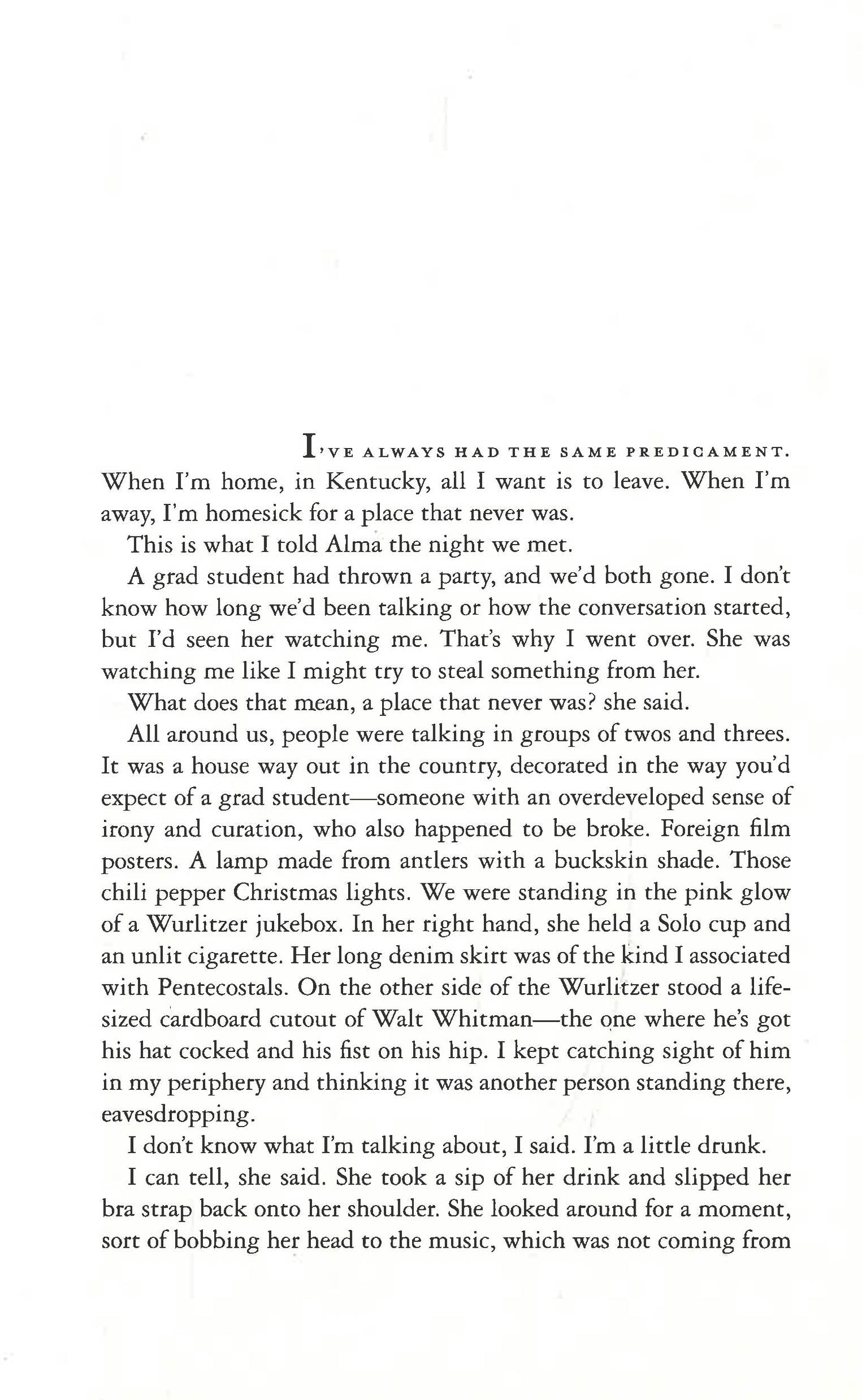 It's there that he meets Alma, a Writer-in-Residence, who seems to have everything Owen doesn't - a prestigious position, an Ivy League education, and published success as a writer. They begin a secret relationship, and as they grow closer, Alma, from a supportive, liberal family of Bosnian immigrants, struggles to understand Owen's fraught relationship with his own family and home.
