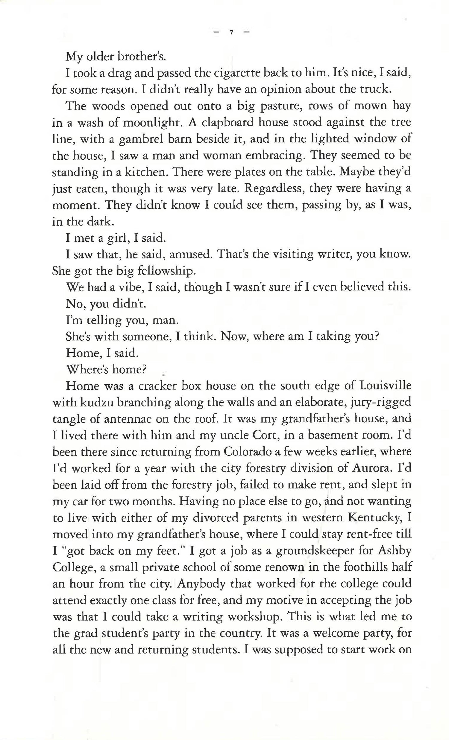 Eager to clean up his act after his troubled early twenties, Owen has returned to Kentucky to take a job as a groundskeeper at a small college in the Appalachian foothills, one which allows him to enrol on their writing course.