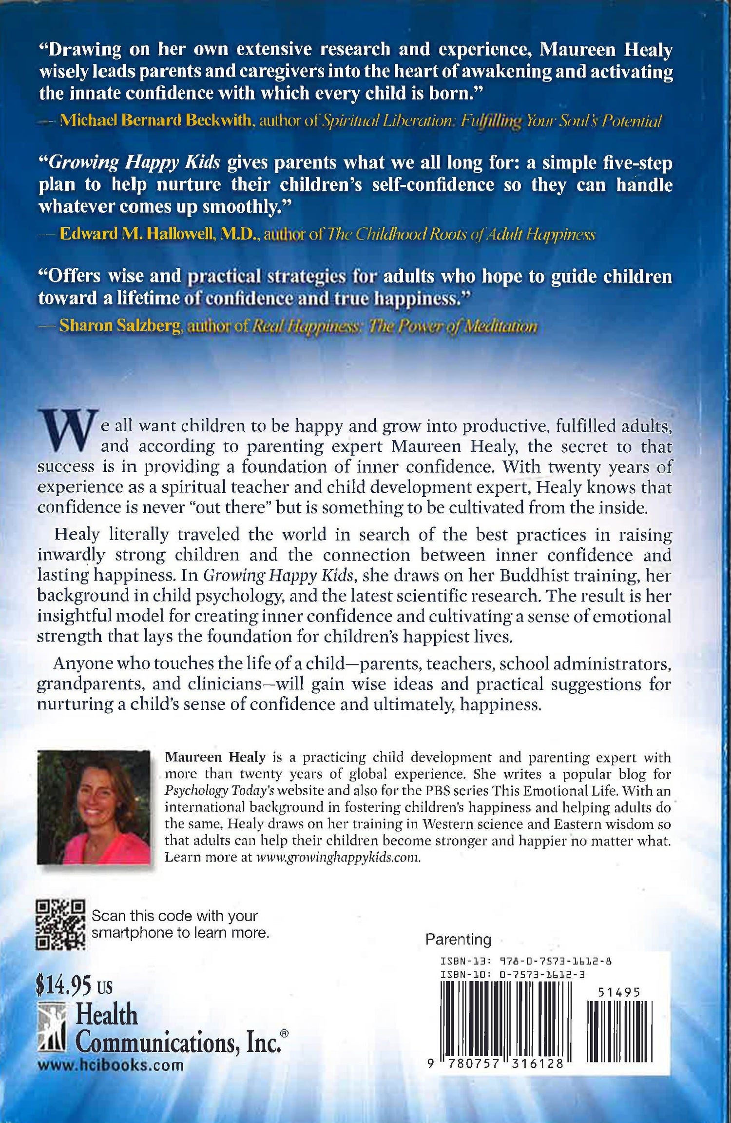 Every parent wants his or her child to be happy and grow into a productive, fulfilled adult . . . and according to parenting expert Maureen Healy, the secret to that success is in providing a foundation of inner confidence. Parents and teachers know that confidence and inner strength are important attributes, but in an era where self-worth is often measured by possessions and attractiveness, most have no idea how to model true inner confidence for their kids or how to help them cultivate it. Real power-or inner confidence-is necessary to overcome obstacles, pursue our unique dreams, and be truly happy.Maureen Healy, a spiritual teacher with twenty years of experience as a child development expert, literally traveled the world from the Bronx to the base of the Himalayas to learn the connection between inner confidence and lasting happiness, and she shares that wealth of knowledge in Growing Happy Kids. Combining her Buddhist training, her background in child psychology, and the latest scientific research, Maureen shares her revolutionary model that defines inner confidence and cultivates a child's sense of optimism and connection. She explores each part of her system, which she called The Five Building Blocks of Confidence, with the mind of a scientist, yet the softness of a real parent who wants to raise strong, happy children. By using those building blocks-biology, beliefs, emotions, social, and spiritual-parents, teachers, and anyone who touches the life of a child can gain the skills necessary to foster happy kids who are strong, self-reliant, and confident."In Growing Happy Kids, Maureen Healy has given us rich and valuable tools to assist us in honoring and supporting our children in building their self-confidence and helping them become happier. It is a MUST read for all parents, educators, and people who care."-Edwene Gaines, author of The Four Spiritual Laws of Prosperity"Drawing on her own extensive research and experience, Maureen Healy wisely leads parents and caregivers into the heart of awakening and activating the innate confidence with which every child is born. This is a book that parents will read over and over again."-Michael Bernard Beckwith, author of Spiritual Liberation: Fulfilling Your Soul's Potential