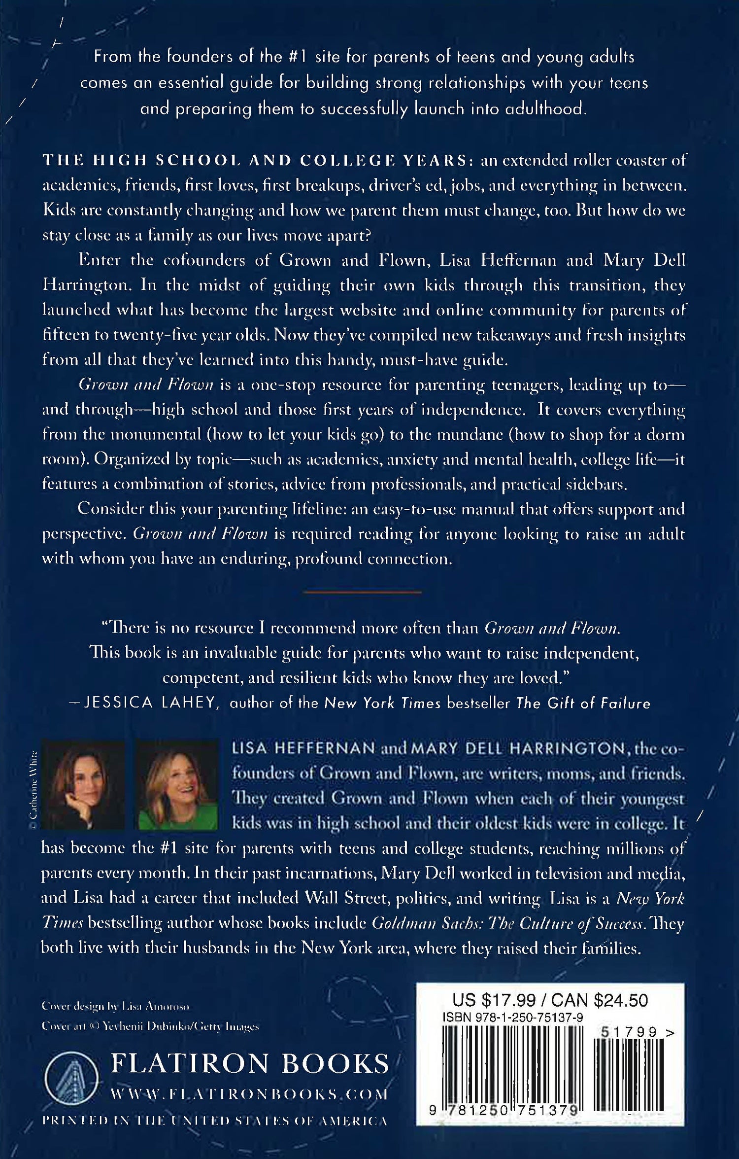 Enter the co-founders of Grown and Flown, Lisa Heffernan and Mary Dell Harrington. In the midst of guiding their own kids through this transition, they launched what has become the largest website and online community for parents of fifteen to twenty-five year olds. Now they've compiled new takeaways and fresh insights from all that they've learned into this handy, must-have guide.