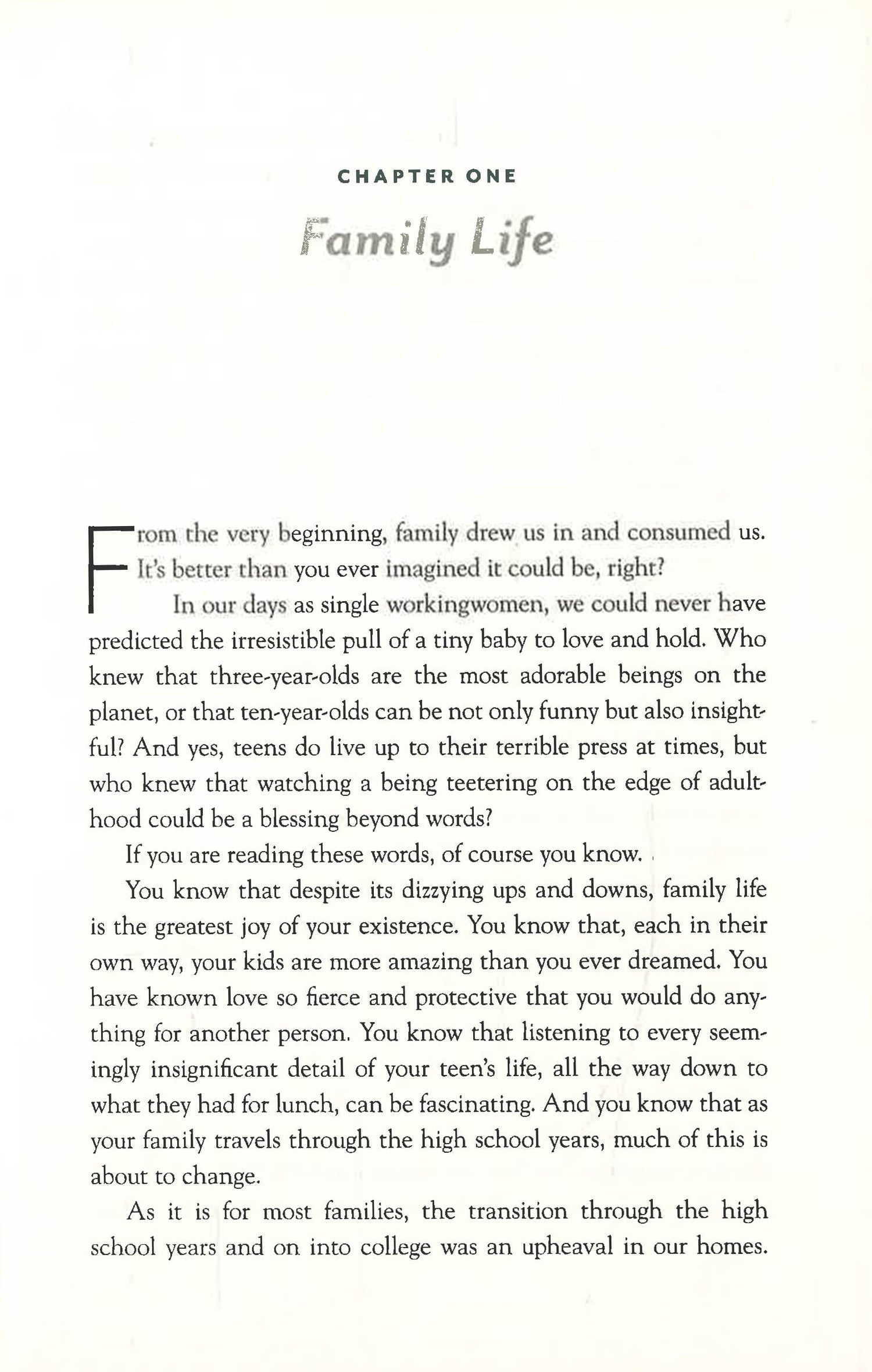The high school and college years: an extended roller coaster of academics, friends, first loves, first break-ups, driver's ed, jobs, and everything in between. Kids are constantly changing and how we parent them must change, too. But how do we stay close as a family as our lives move apart?