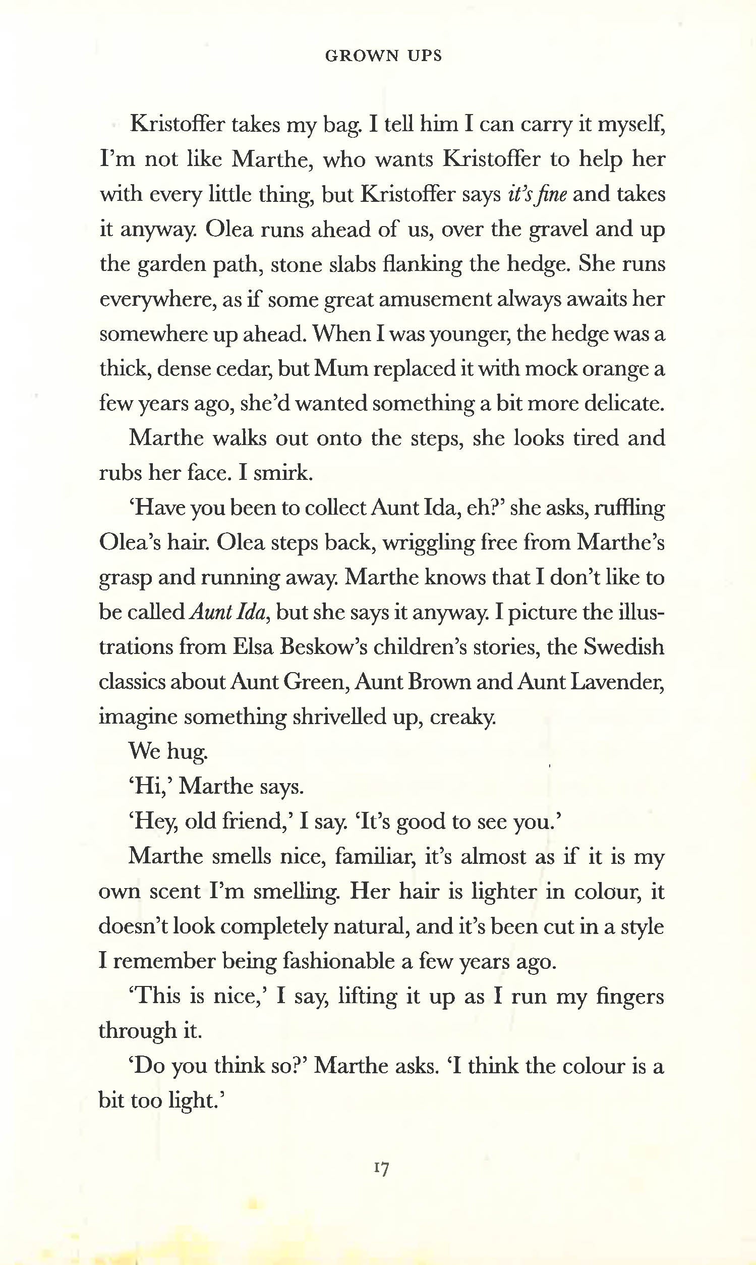 Ida is a forty-year-old architect, single and struggling with the feeling of panic as she realises her chances of motherhood are rapidly falling away from her. She's navigating Tinder and contemplating freezing her eggs - but tries to put a pause on these worries as she heads out to the family country cabin for her mother's 65th birthday. That is, until some supposedly wonderful news from her sister sets old tensions simmering, building to an almighty clash between Ida and her sister, her mother, and her entire family. Exhilarating, funny, and unexpectedly devastating, Grown Ups gets up close and personal with a dysfunctional modern family.