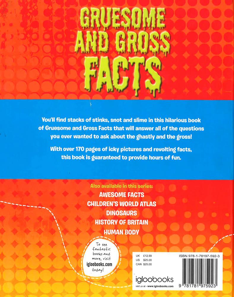 Did you know that, in some countries, people eat maggot-infested cheese as a delicacy? Or that a snake could give you a deadly bite, even if it is dead? Packed with over 1,500 disgustingly gruesome and fiendishly foul facts, kids are guaranteed to be fascinated for hours!