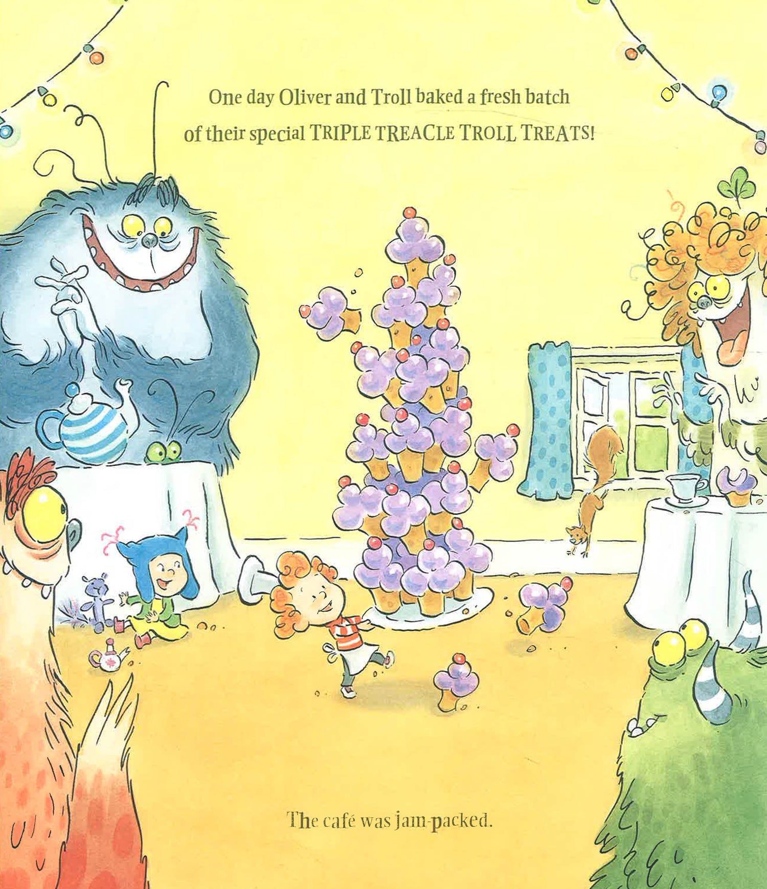 Oliver and his best friend Troll run a cafe in the woods. They make the BEST cakes - their troll customers would much rather eat cakes than children! One particularly busy day in the cafe, Oliver's sister Dolly disappears, so Oliver and Troll set off to find her. Their search takes them up Munch Mountain, where the biggest, meanest and grumpiest troll in the world lives. Oliver doesn't believe all the scary rumours, but Troll's not so sure . . .
