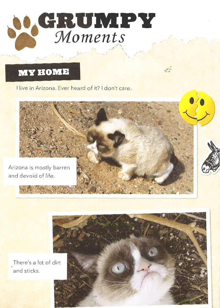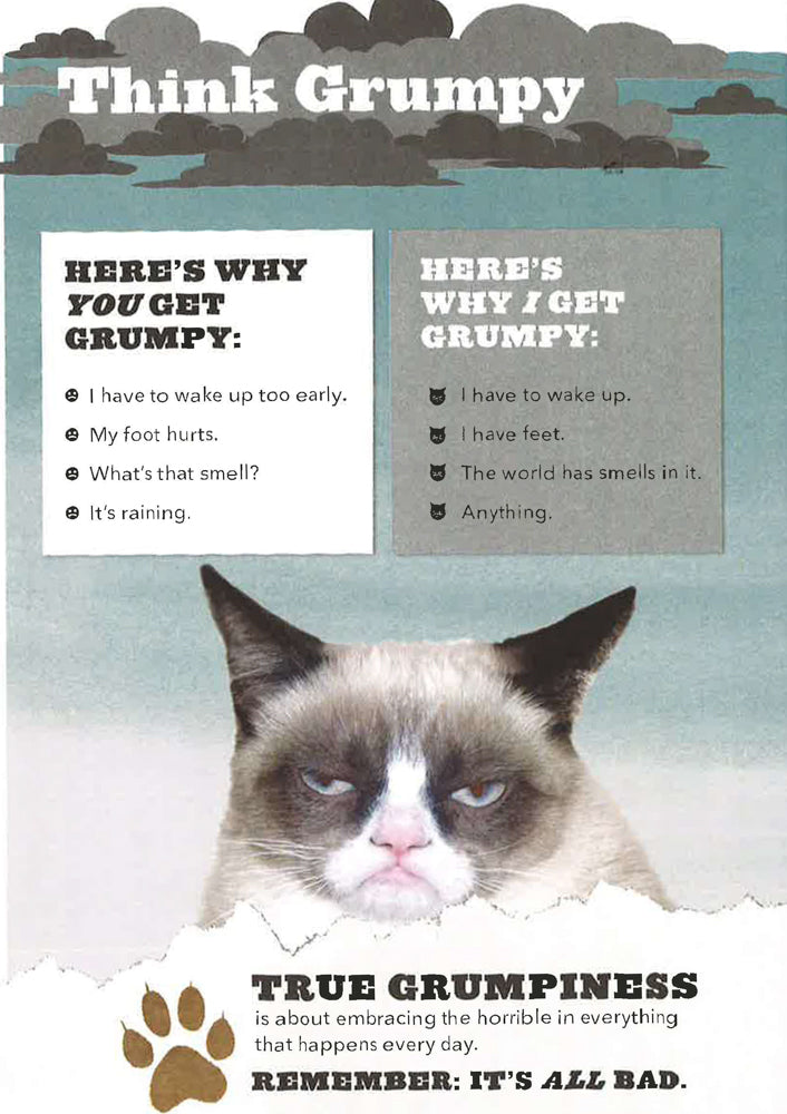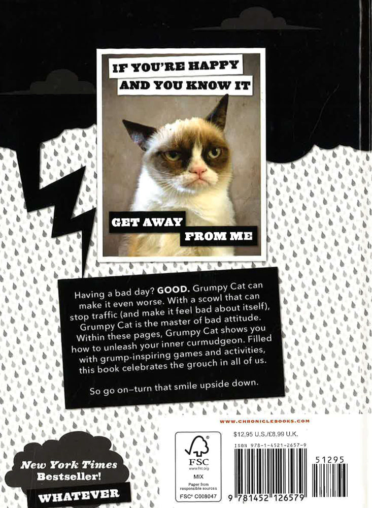 Disgruntled tips and activities designed to put a frown on your face Featuring the sour expression of internet sensation Grumpy Cat: Internet sensation Grumpy Cat's epic feline frown has inspired legions of devoted fans. Celebrating the grouch in everyone, Grumpy Cat: A Grumpy Book teaches the fine art of grumpiness and includes enough bad attitude to cast a dark cloud over the whole world. * Featuring brand new as well as classic photos, grump-inspiring activities, and games * Delivers unmatched, hilarious grumpiness that puts any bad mood in perspective * The original Grumpy Cat was a small cat with a big frown who inspired a hugely popular meme that made even the grumpiest people around the world smile Turn that smile upside down with the help of Grumpy Cat. Celebrating the grouch in all of us. * A perfect coffee table, bathroom, or bar top conversation-starting book * Makes a great stocking stuffer, holiday, birthday, or pick-me-up gift