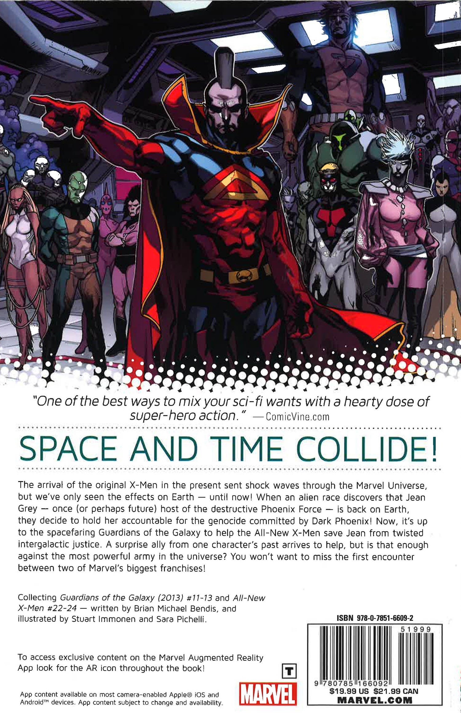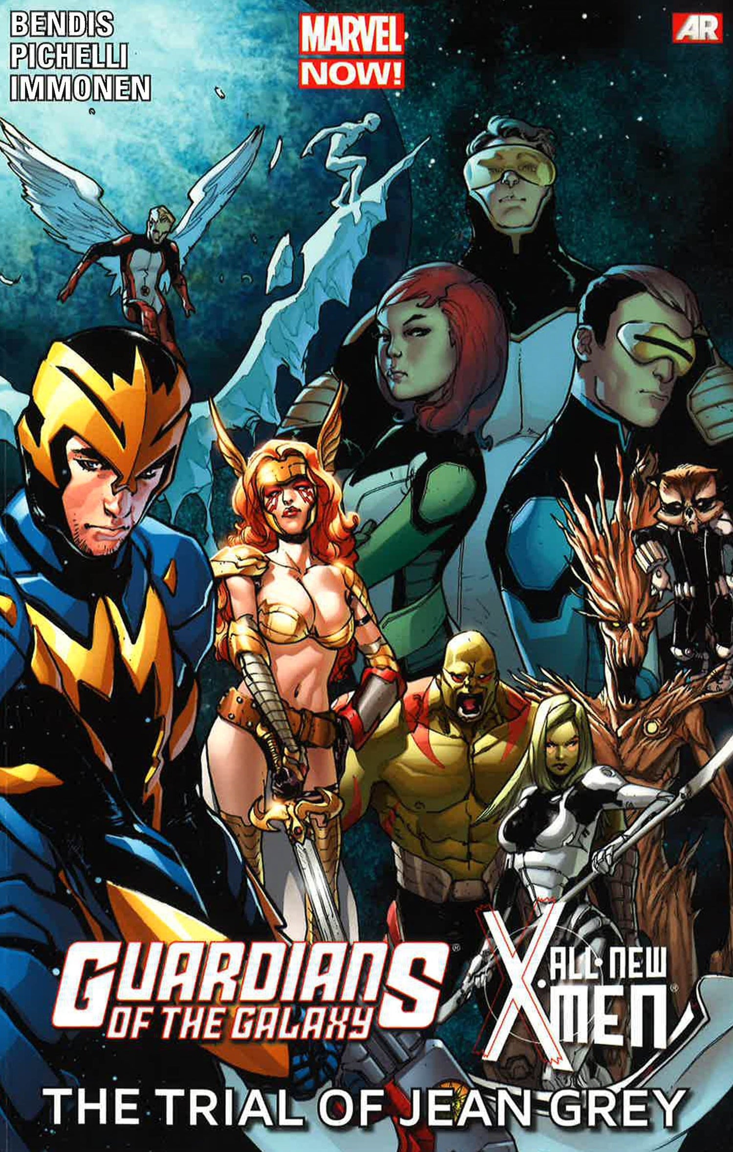 Space and time collide! The arrival of the original X-Men in the present sent shockwaves through the Marvel Universe, but we've only seen the effects on Earth - until now! When an alien race discovers that Jean Grey - once (or perhaps future) host of the destructive Phoenix Force - is back on Earth, they decide to hold her accountable for the genocide committed by Dark Phoenix! Now, it's up to the spacefaring Guardians of the Galaxy to help the All-New X-Men save Jean from twisted intergalactic justice. A surprise ally from one character's past arrives to help, but will that be enough against the most powerful army in the universe? Don't miss the first encounter between two of Marvel's biggest franchises! COLLECTING: Guardians of the Galaxy 11-13, All-New X-Men 22-24