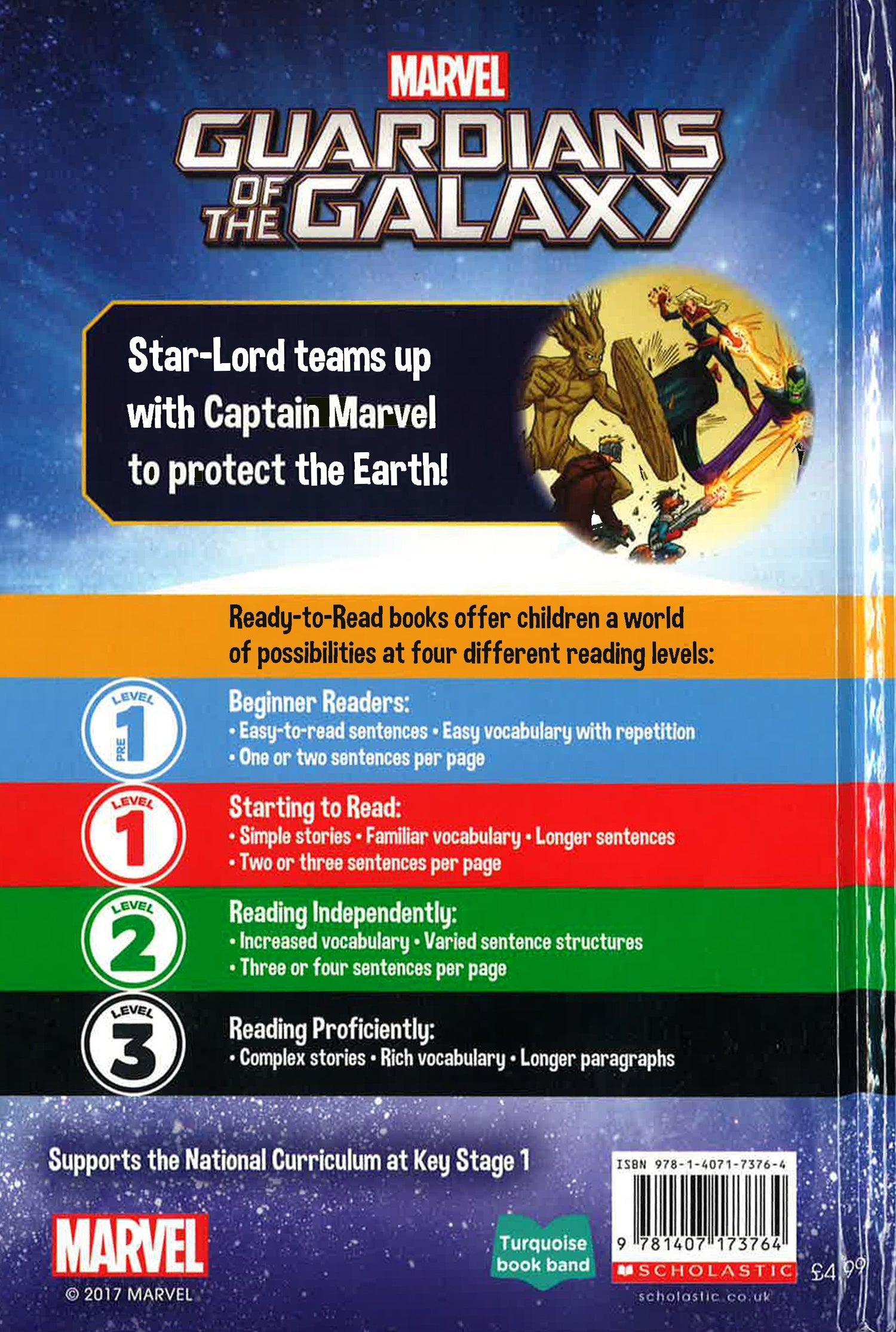 Join Star-Lord on a mission to save his home from a sneaky enemy! This Marvel Adventures in Reading book is a level two reader, featuring harder vocabulary, longer and more varied sentence structure and three or four sentences per page. This book is part of a delightful series of stories for beginner readers with favourite characters like the Guardians of the Galaxy! There are four levels to the series, so there will always be one that is just right for your child's developing reading ability.