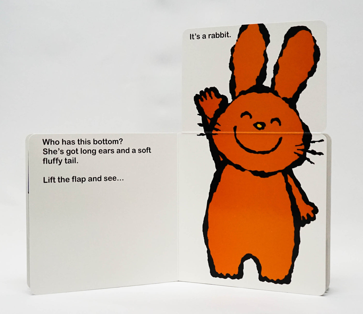 Name that bottom! Here are some unusual views! You may know these animals well but can you spot them from the back? Bold, engaging pictures make this a charming and funny first book.