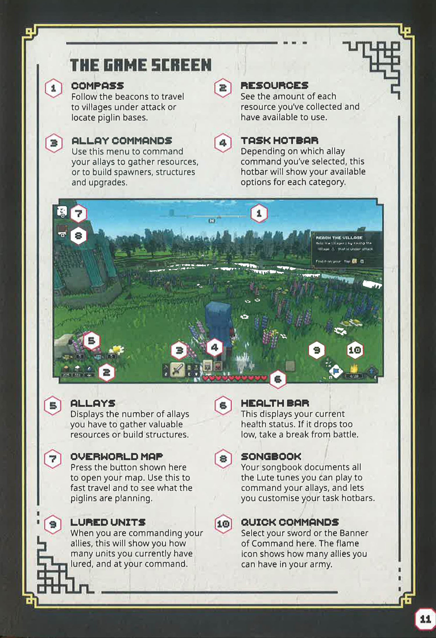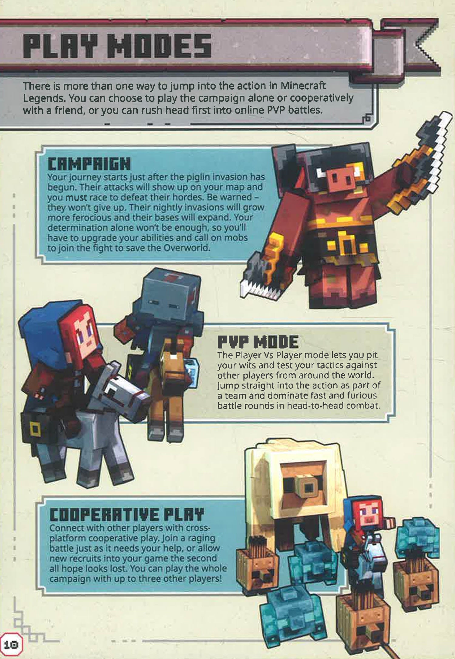 This guide will inspire and guide heroes on how to create vital alliances and lead new allies in thrilling battles to defend the Overworld from the piglin invasion, with insight from Minecraft Legends’ game developers. It contains:
