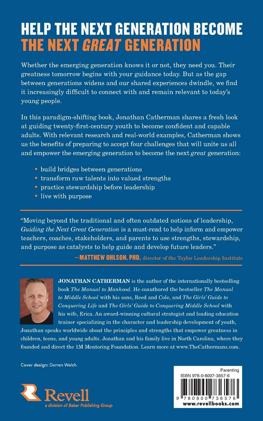 It's cliche to say today's adults hope the best for the next generation, yet fear the worst. As the gap between generations widens and our shared experiences dwindle, adults find it increasingly difficult to connect with and remain relevant to today's young people. So the question is, what values can we pass on that will help them to become the next great generation? And how do we communicate those values effectively? In this paradigm-shifting book, Jonathan Catherman shares with adults raised in the 1900s a fresh look at guiding 21st-century youth to become confident and capable adults. With relevant research and real-world examples, Catherman shows us the benefits of practicing and teaching four principles that will unite and empower us all: - build bridges between generations - transform raw talent into valued strengths - practice stewardship before leadership - live with purpose Whether the emerging generation knows it or not, they need you. Their greatness tomorrow begins with your guidance today.