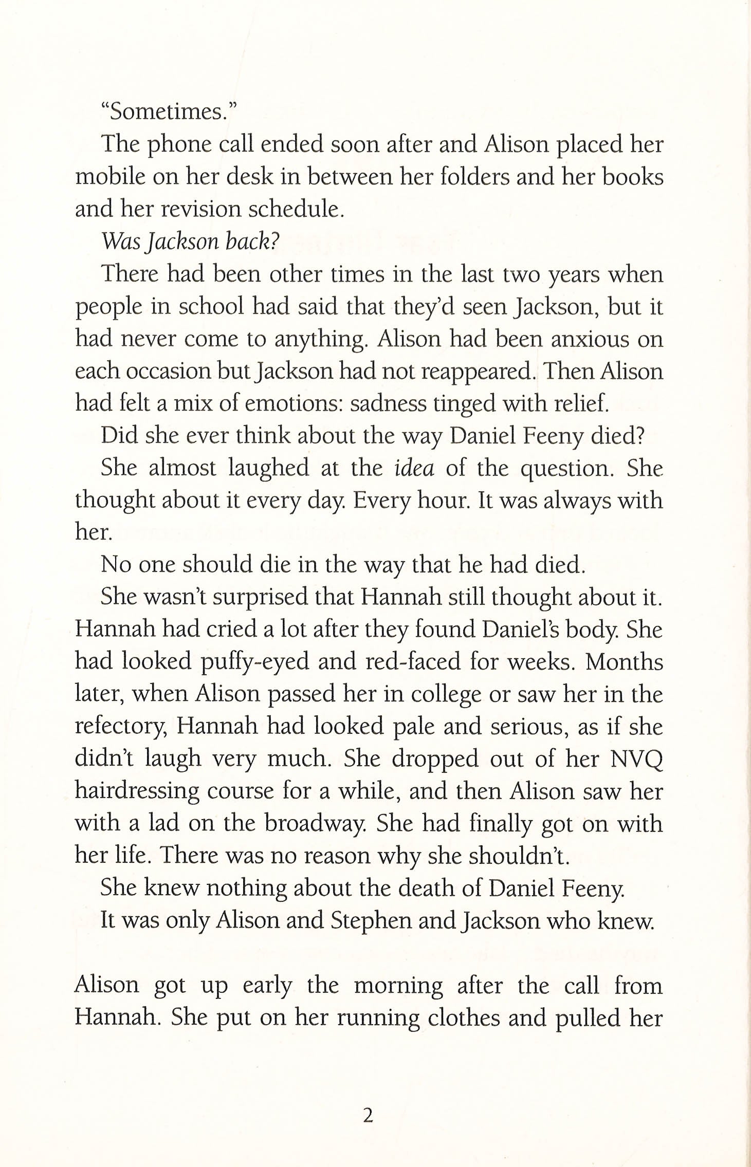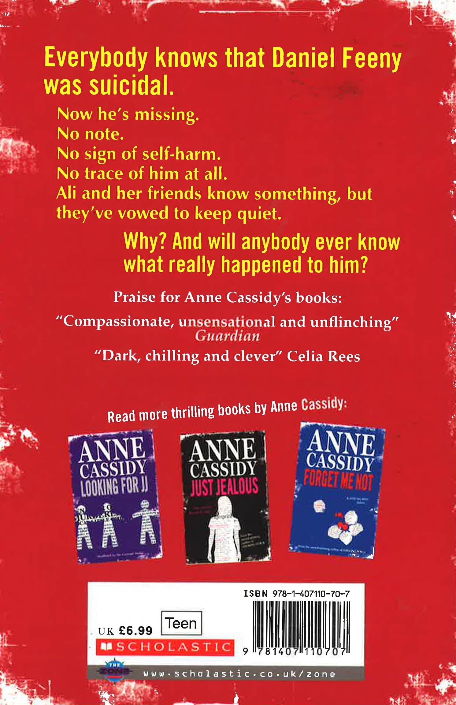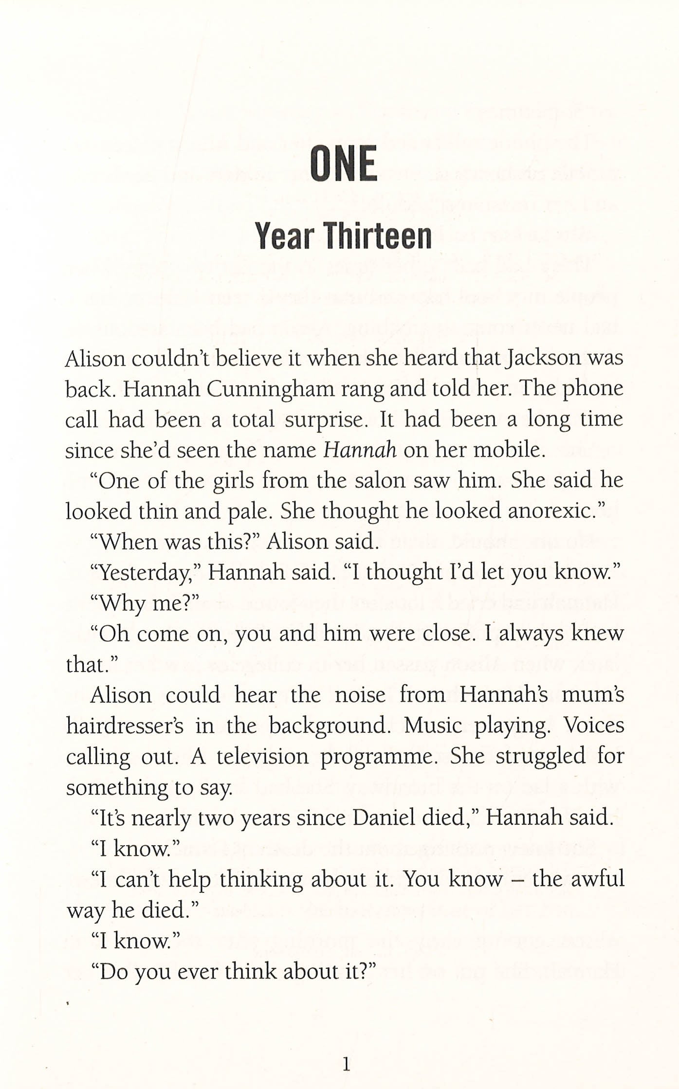 Ali's life is falling apart. She's drifting away from her boyfriend and her best mate. She's got a crush on someone else's boyfriend - but more than that, she's bored. So when she and her friends save Daniel from a suicide attempt, she welcomes the diversion of befriending him. Until a row one night leads to his accidental death. Now Ali and her group have a decision to make: stay quiet or face the consequences. And one of them has decided that it's time to speak up...