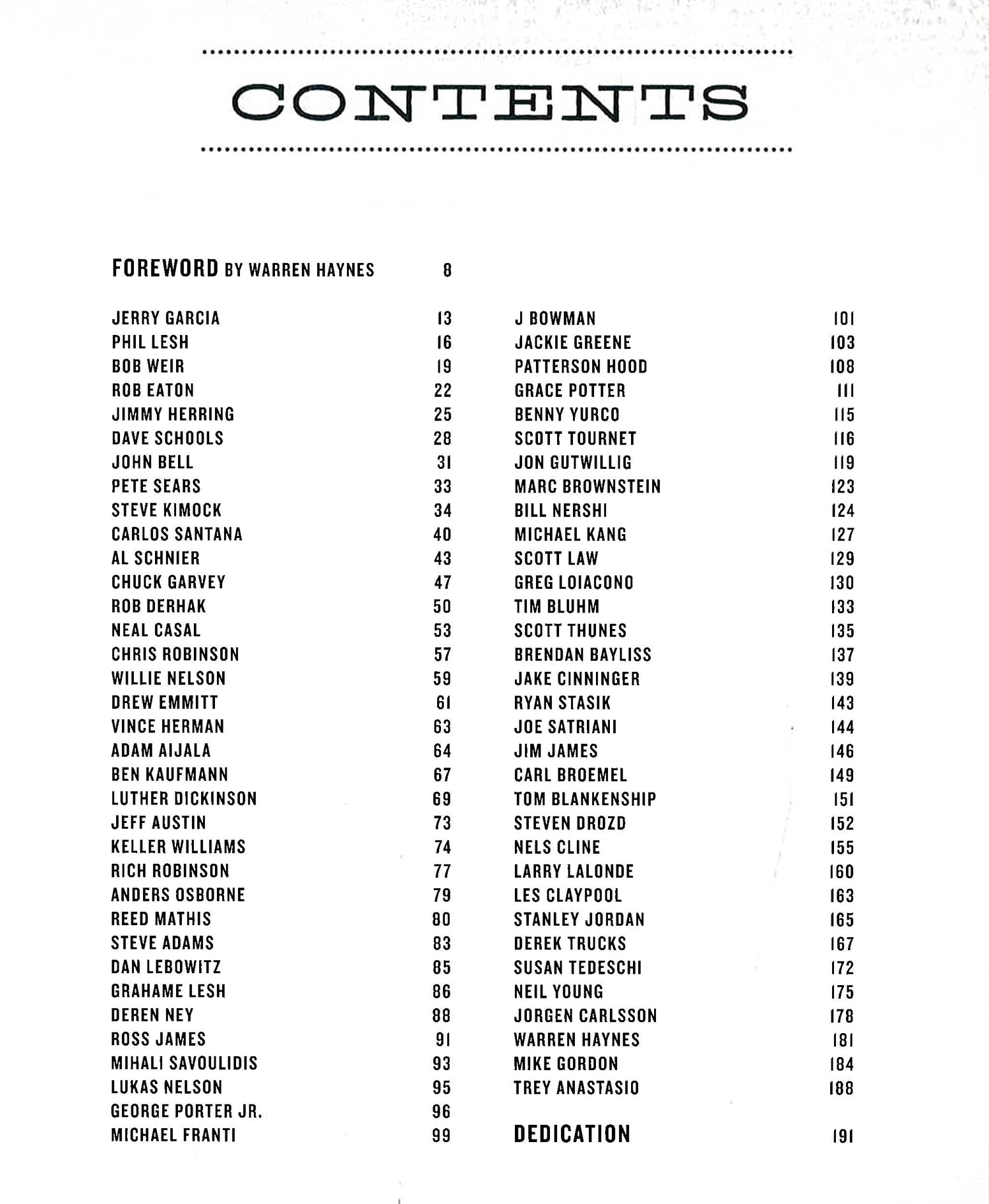 Guitars That Jam is the definitive illustrated history of the guitars of rock-and-roll legend. Featuring images from live concerts, outdoor festivals, and private recording sessions, this spectacular volume captures the personal connection between artist and instrument. Along with the make and model of the guitar, each image is accompanied by a story from the musician detailing the guitar’s special characteristics, as well as its significance to them and rock history. Including photographs of Neil Young, Santana, Bob Weir, Trey Anastasio, Warren Haynes, and many more, Guitars That Jam is the ultimate photographic guide to the world of improvisational rock guitars.
