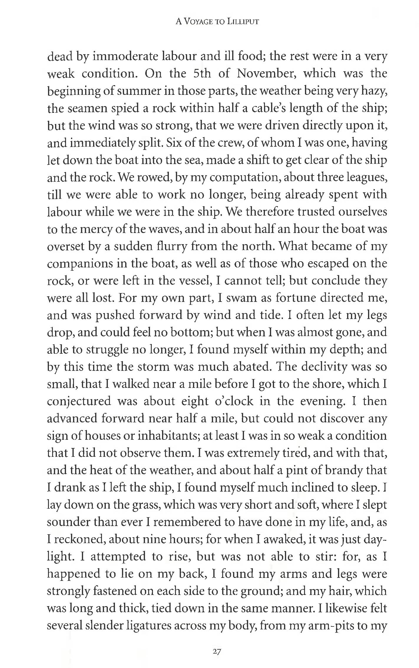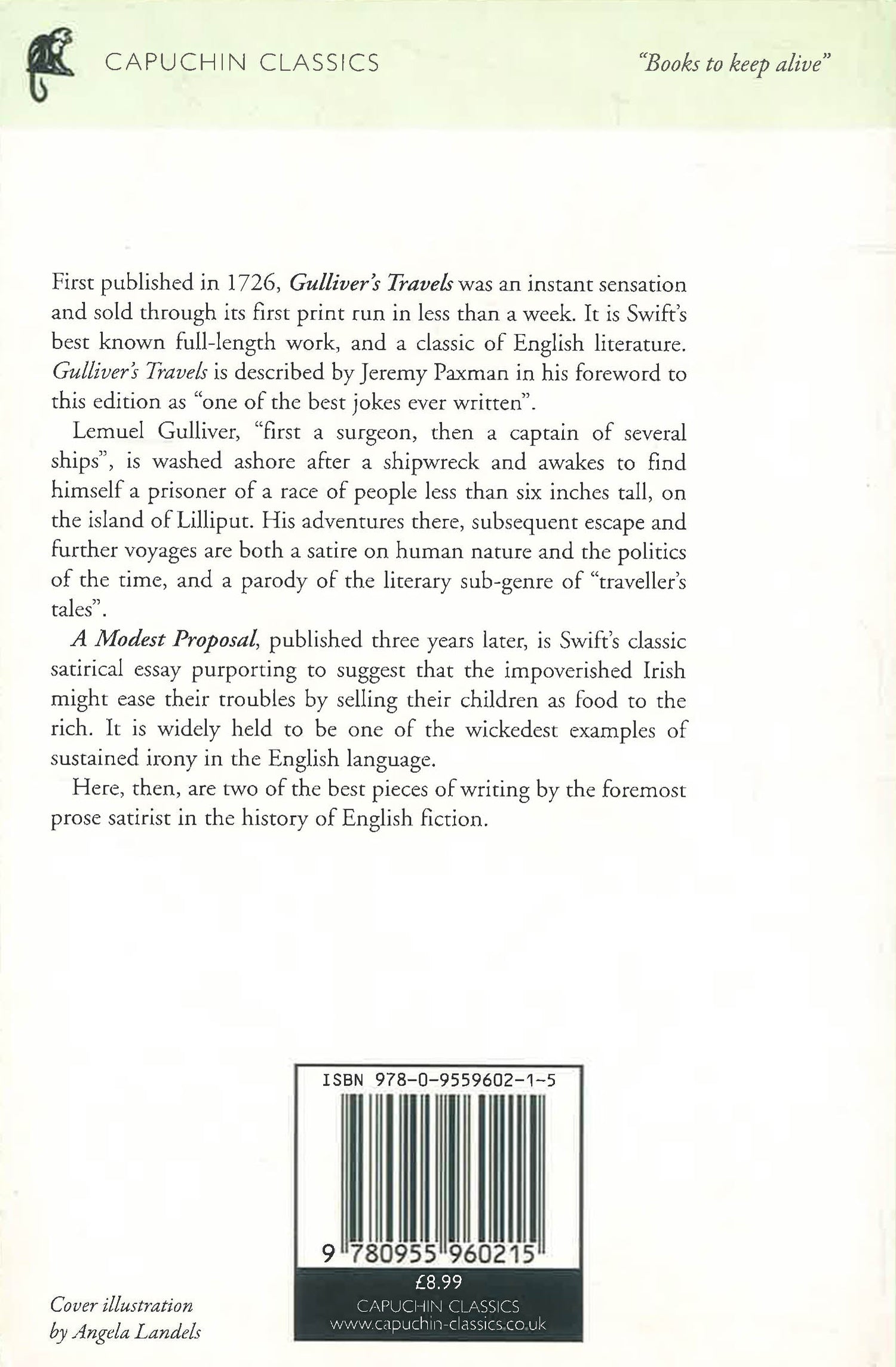 Gulliver's encounters - with the crude giants of Brobdingnag, the philosophical Houyhnhnms and brutish Yahoos - give him new, bitter insights into human behaviour. Swift's savage satire views mankind in a distorted hall of mirrors as a diminished, magnified and finally bestial species, presenting us with an uncompromising reflection of ourselves