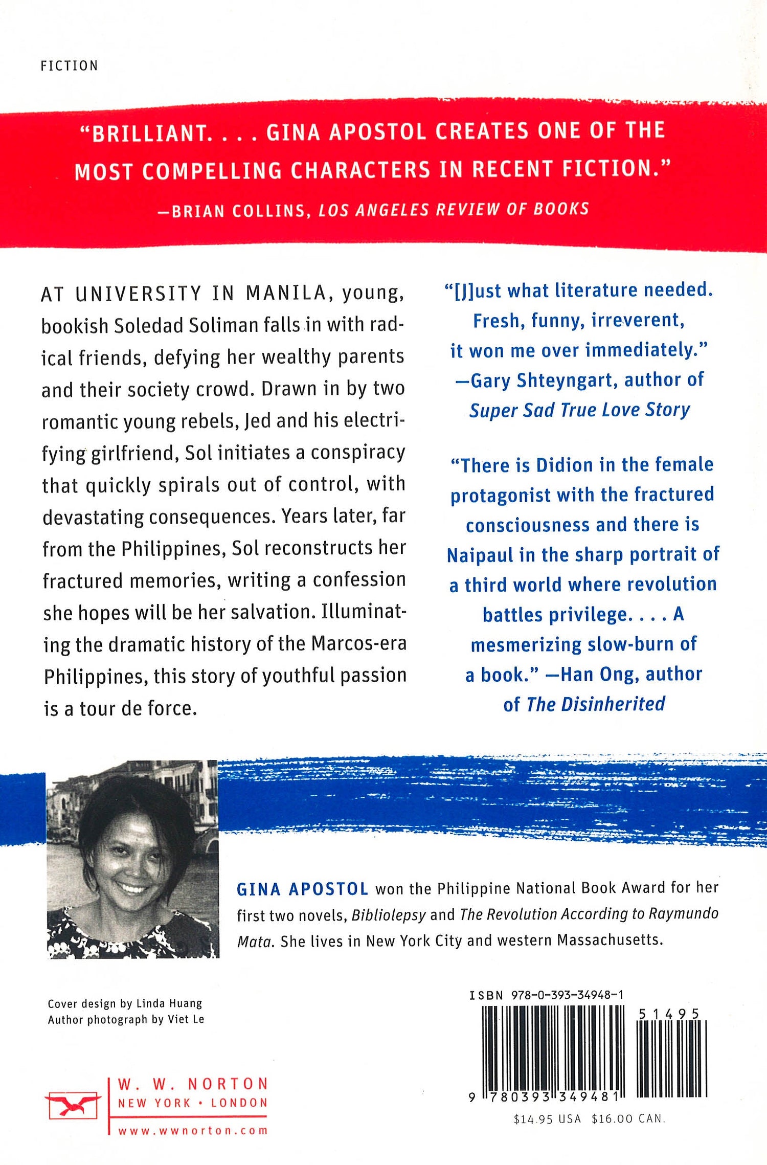 At university in Manila, young, bookish Soledad Soliman falls in with radical friends, defying her wealthy parents and their society crowd. Drawn in by two romantic young rebels, Sol initiates a conspiracy that quickly spirals out of control. Years later, far from her homeland, Sol reconstructs her fractured memories, writing a confession she hopes will be her salvation. Illuminating the dramatic history of the Marcos-era Philippines, this story of youthful passion is a tour de force.