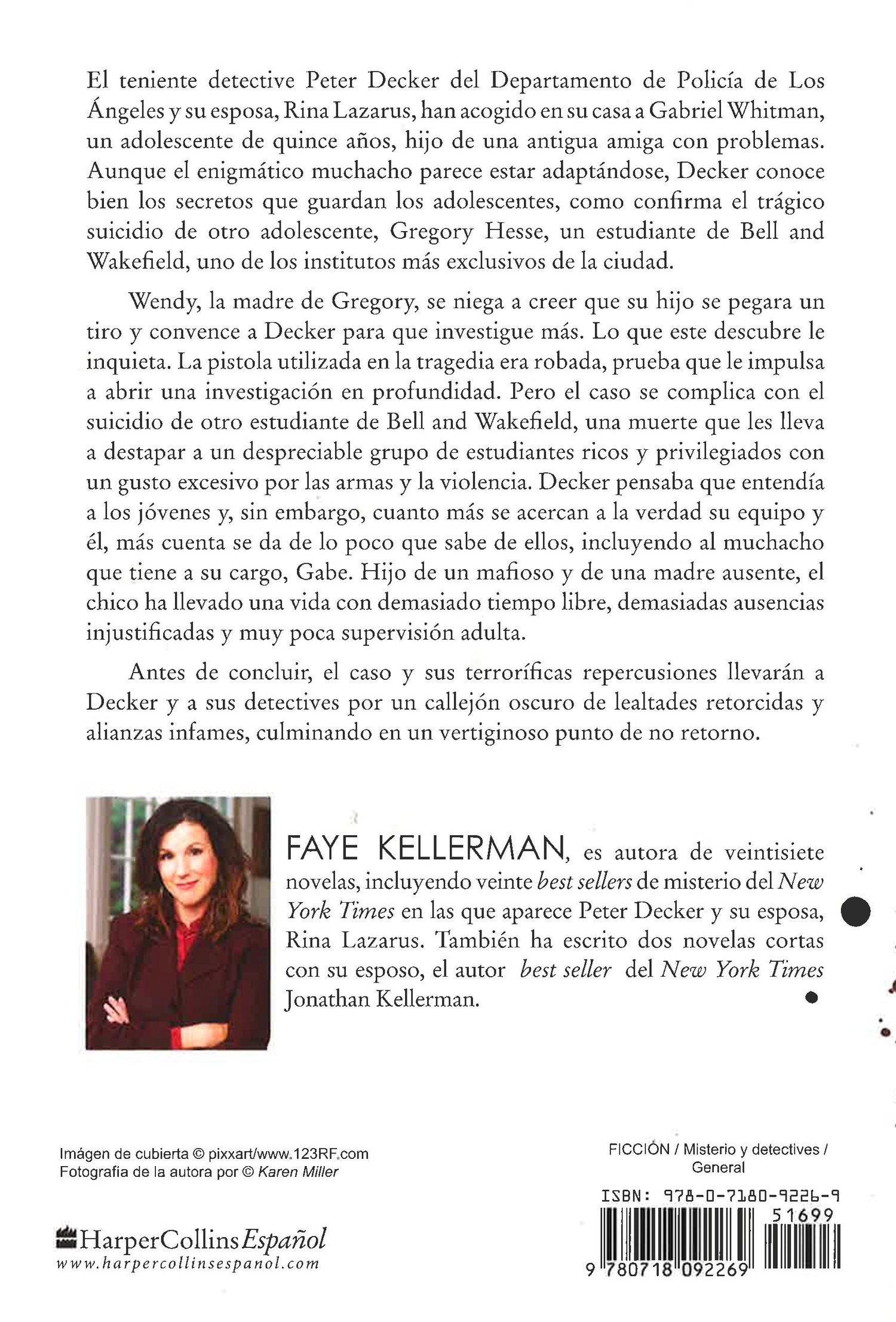 El teniente detective Peter Decker del Departamento de Policía de Los Ángeles y su esposa, Rina Lazarus, han acogido en su casa a Gabriel Whitman, un adolescente de quince años, hijo de una antigua amiga con problemas. Aunque el enigmático muchacho parece estar adaptándose, Decker conoce bien los secretos que guardan los adolescentes, como confirma el trágico suicidio de otro adolescente, Gregory Hesse, un estudiante de Bell and Wakefield, uno de los institutos más exclusivos de la ciudad.