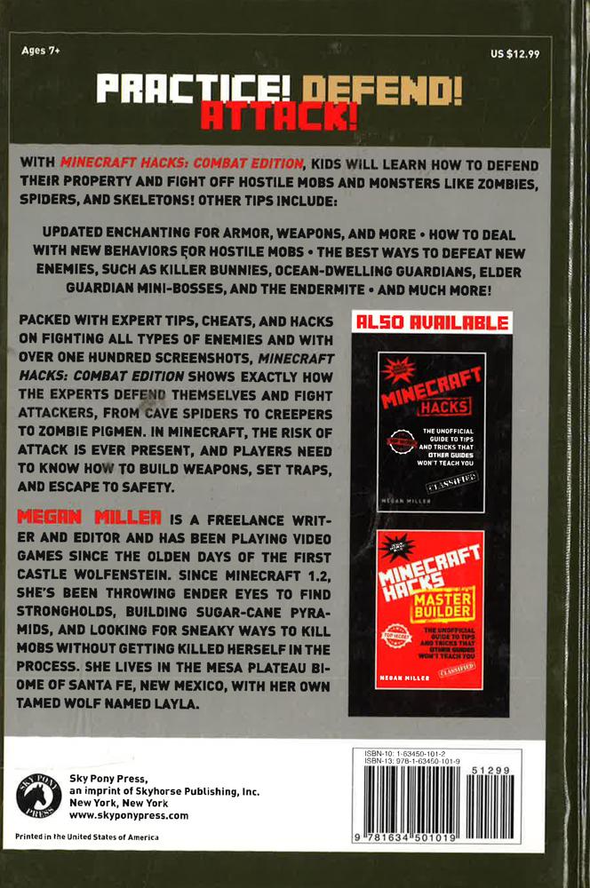 From the author of Hacks for Minecrafters and Hacks for Minecrafters: Master Builder comes the most encompassing guide ever to combat in the world of Minecraft!With more than 100 million registered Minecraft accounts and rights picked up by Warner Brothers for an action-adventure film in the style of The Lego Movie, Minecraft is on its way to becoming the next big children's brand. While there are several successful game guides on the market already, this book will be the first unofficial "hacker's" guide dedicated to combat and geared toward seven- to twelve-year-old Minecrafters.With Hacks for Minecrafters: Combat Edition, kids will learn how to defend their property and fight off hostile mobs and monsters like zombies, spiders, and skeletons! Other tips include:Updated enchanting for armor, weapons, and moreHow to deal with new behaviors for hostile mobsThe best ways to defeat new hostile mobs, such as killer bunnies, ocean-dwelling guardians, elder guardian mini-bosses, and the rare endermiteAnd much more!Packed with expert tips, cheats, and hacks on fighting all types of enemies and with over one hundred screenshots, Hacks for Minecrafters: Combat Edition shows exactly how the experts defend themselves and fight attackers, from cave spiders to creepers to zombie pigmen. In Minecraft, the risk of attack is ever-present, and players need to know how to build weapons, set traps, and escape to safety.