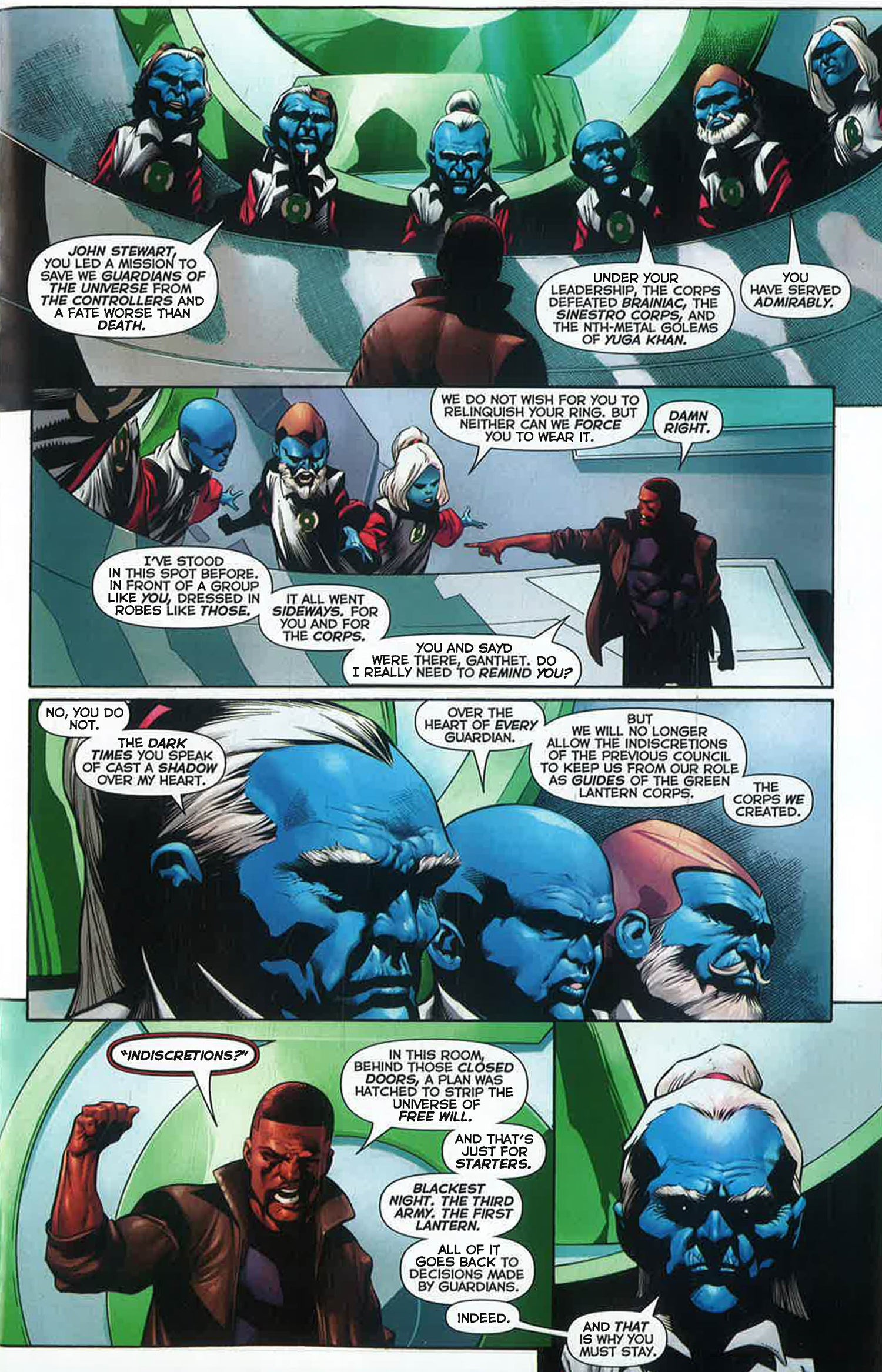 Meanwhile, Green Lantern John Stewart helps restore the Guardians of the Universe to a critical role in leading the Green Lantern Corps. But are his efforts too successful?