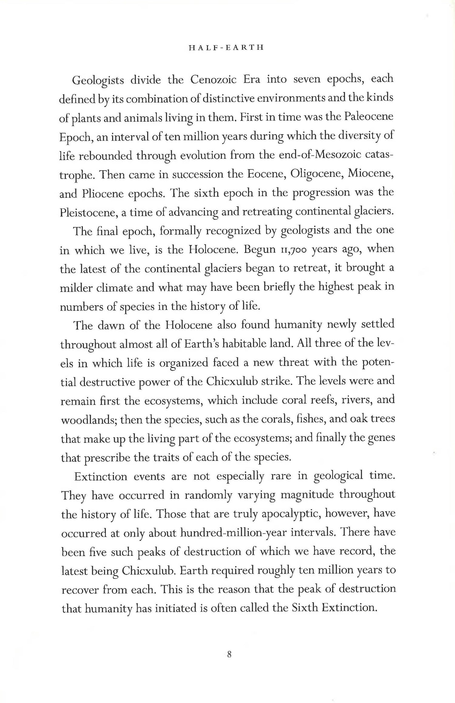 History is not a prerogative of the human species, Edward O. Wilson declares in Half-Earth. Demonstrating that we blindly ignore the histories of millions of other species, Wilson warns us that a point of no return is imminent. Refusing to believe that our extinction is predetermined, Wilson has written Half-Earth as a cri de coeur, proposing that the only solution to our impending "Sixth Extinction" is to increase the area of natural reserves to half the surface of the earth. Half-Earth is a resounding conclusion to the best-selling trilogy begun by the "splendid" (Financial Times) The Social Conquest of Earth (ISBN 978 0 87140 363 6) and "engaging and highly readable" (Times Higher Education) The Meaning of Human Existence (ISBN 978 0 87140 100 7).