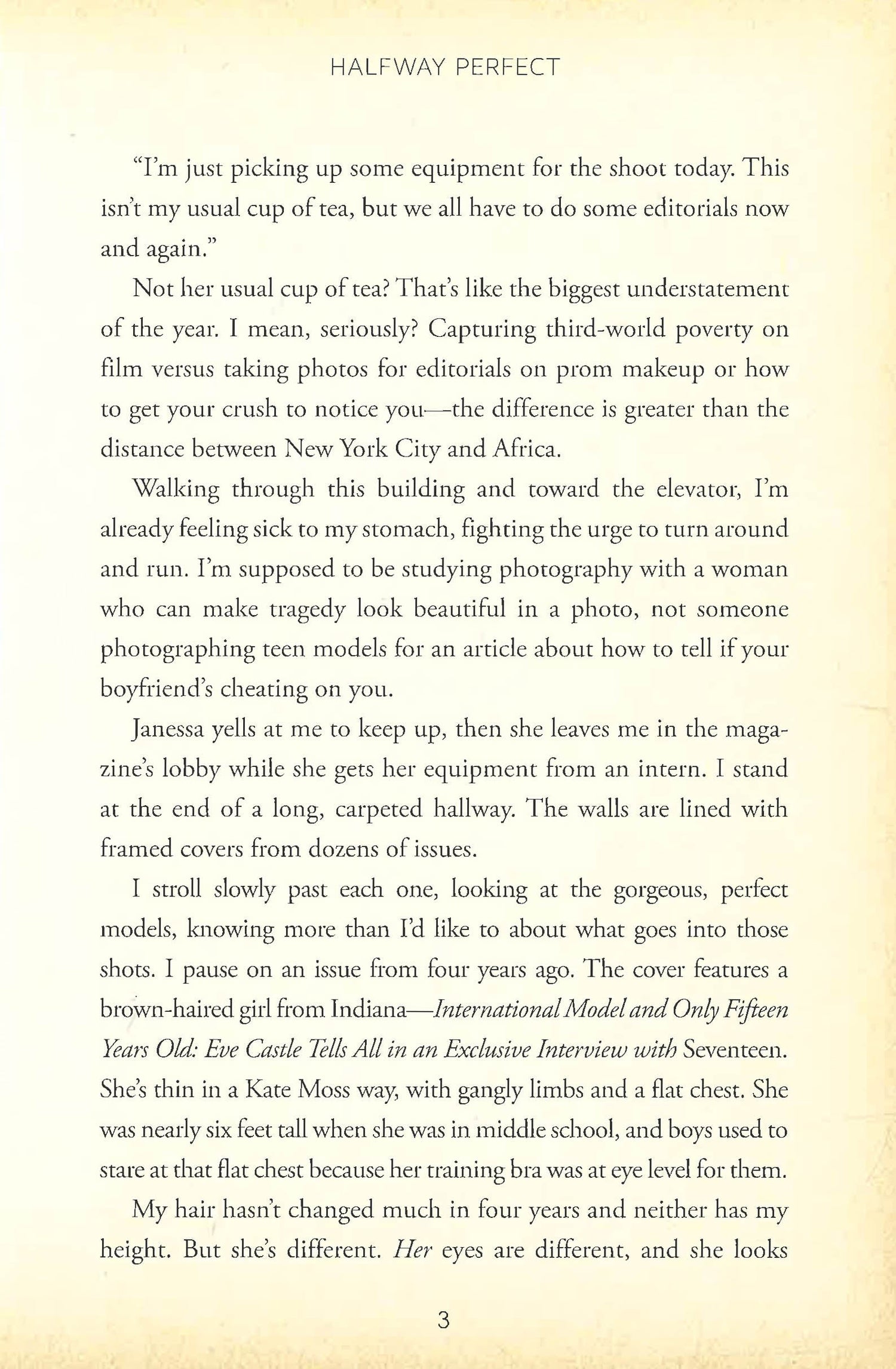 "Engagingly and intelligently written, this absorbing novel should work as catnip to fashion-obsessed readers."--Kirkus Reviews Eve's time as a fashion model nearly destroyed her -- now she's determined to build a career behind the camera lense. But landing a coveted photography internship brings her face to face with her dark past -- just as she's falling for hot male model Alex. Eve had it all--emphasis on had. She was a rising star with a modeling contract destined to catapult her to celebrity...until the devastating night when she walked away from everything, everyone in her life. Eve's worked hard to put her troubled past behind her, and photography's given her a fresh start. She just never thought her dream internship would force her back into the industry that broke her trust and her heart. Alex is a regular, good guy from Nebraska, but as an up-and-coming model, he's learning that appearances are everything. The fake relationship Alex's agent concocted for Alex and his underage costar? That'll land them both the hot jobs. But Alex hadn't counted on falling for Eve, the girl behind the camera. With careers and love on the line, Eve and Alex are about to prove you may want what you can't have--but sometimes it's worth the risk.