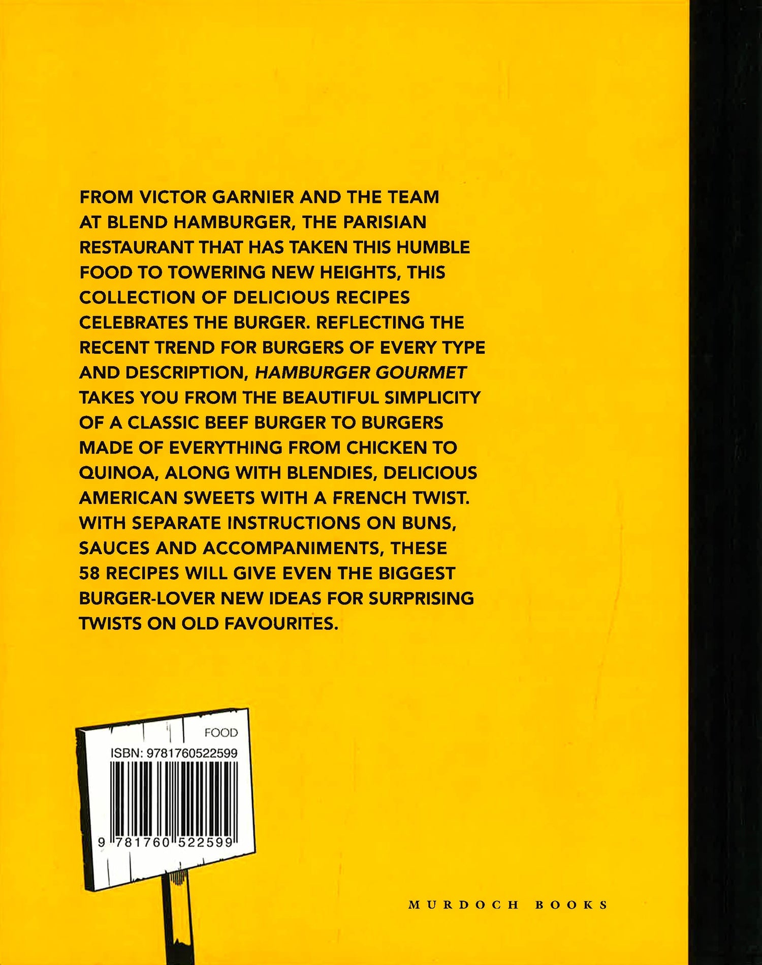 From Victor Garnier and the team at blend hamburger, the Parisian restaurant that has taken this humble food to towering new heights, this collection of delicious recipes celebrates the burger. Reflecting the continuing trend for burgers of every type and description, Hamburger Gourmet takes you from the beautiful simplicity of a classic beef burger to burgers made of everything from chicken to quinoa, along with blendies, delicious American sweets with a French twist. With separate instructions on buns, sauces and accompaniments, these 58 recipes will give even the biggest burger-lover new ideas for surprising twists on old favourites.