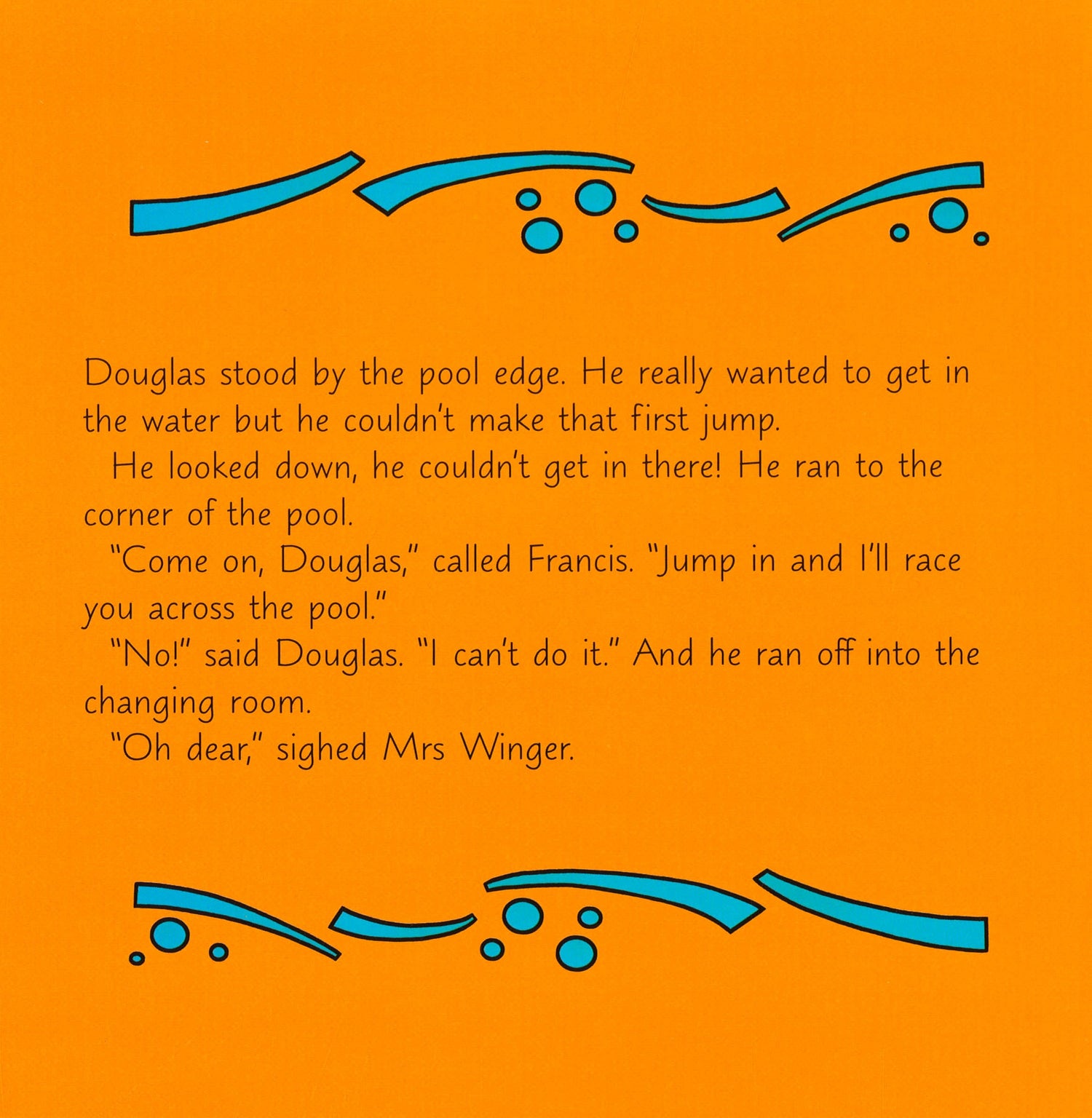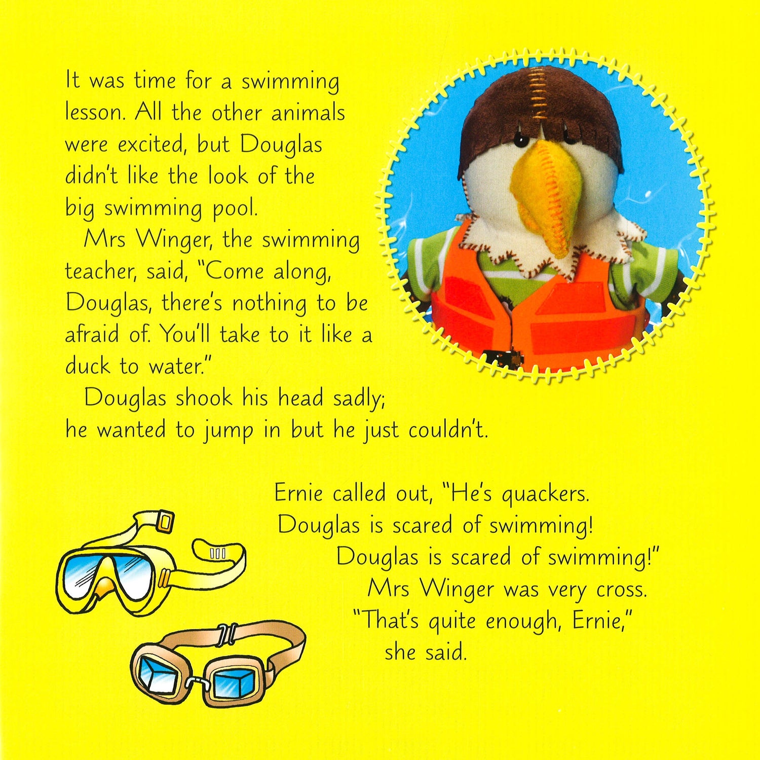 Douglas wanted to learn how to swim but he was too scared of the water. All the other little animals laughed at him. Then he phoned Hana and she helped him to put his fears behind him.