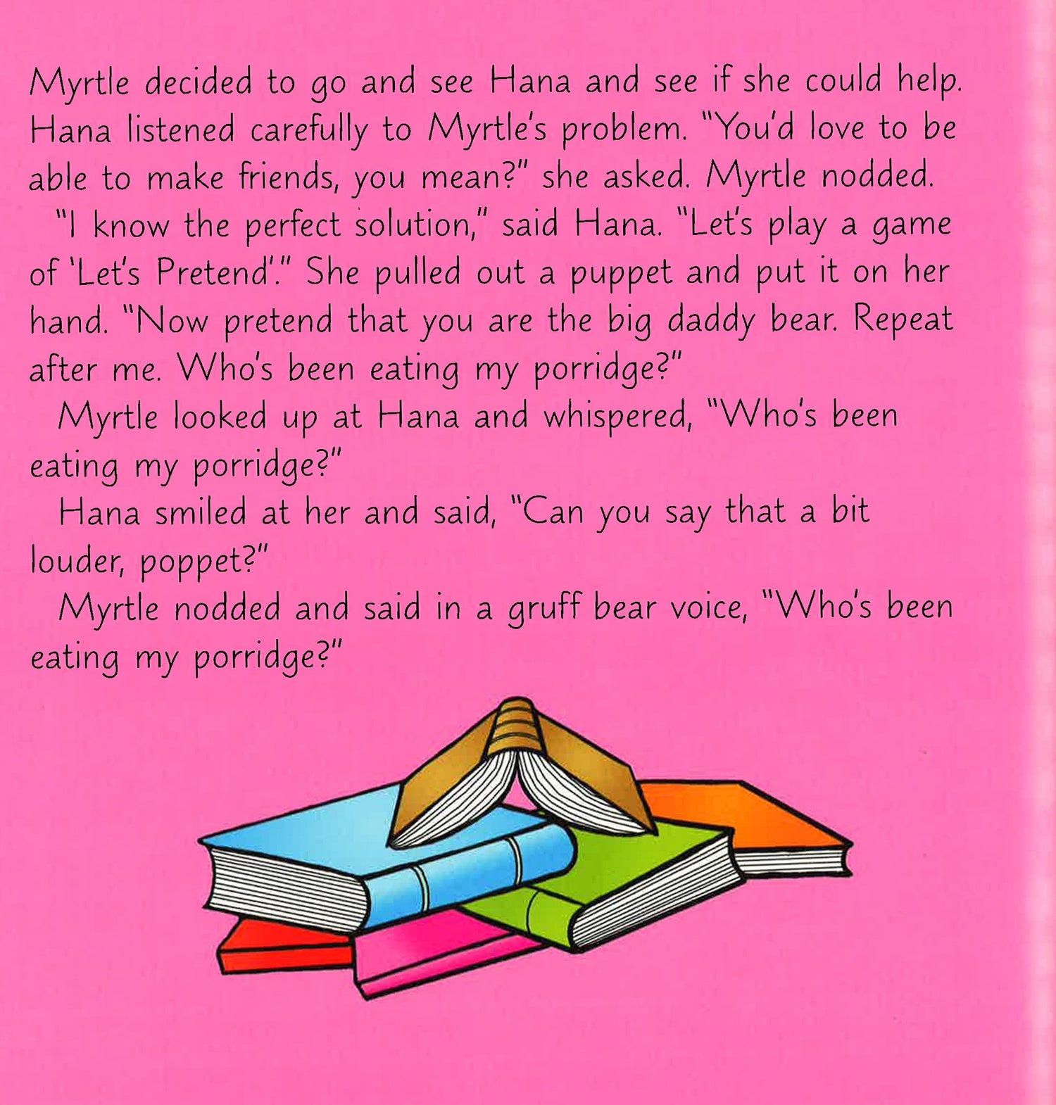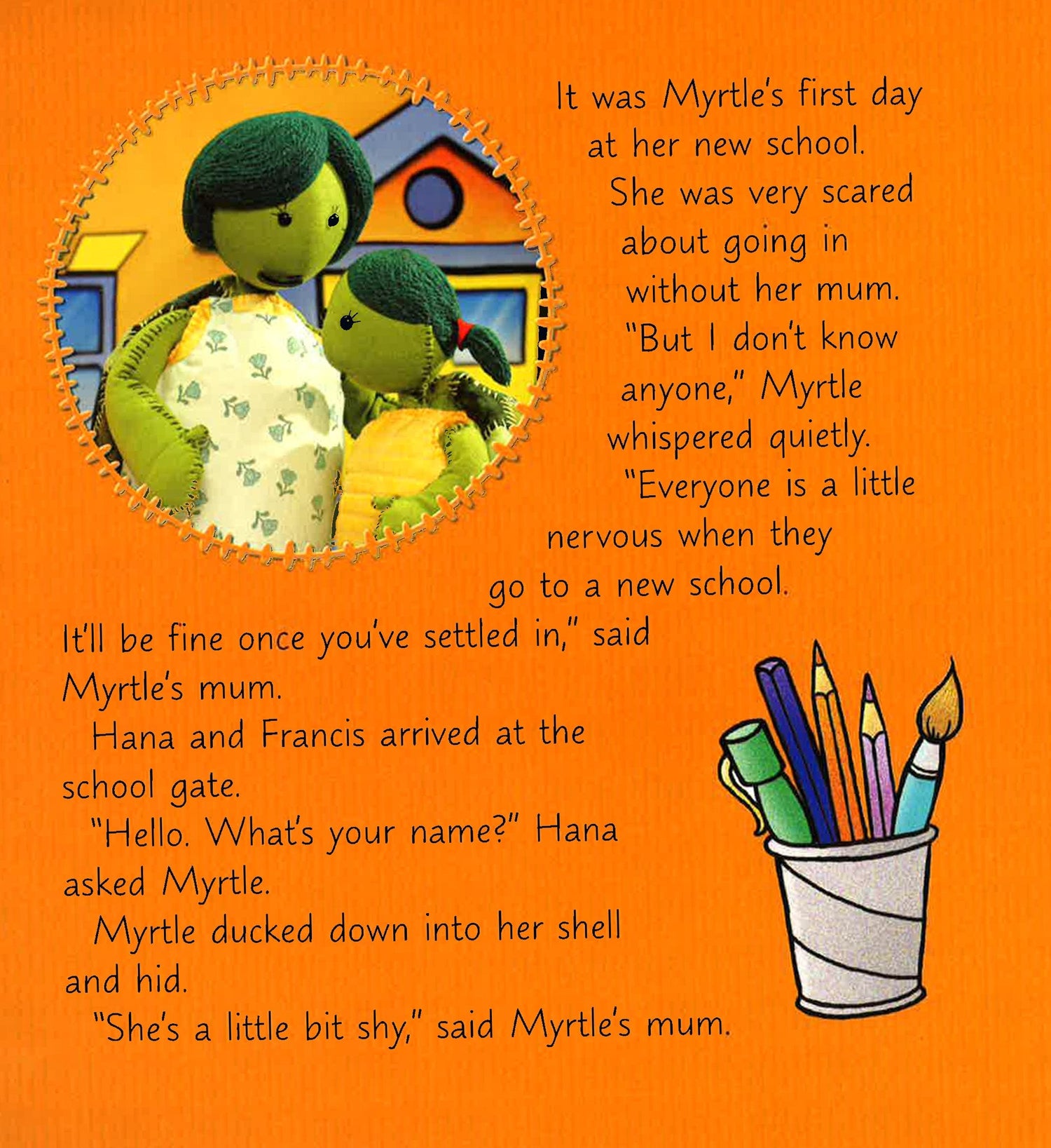 Myrtle the turtle was very shy. Every time anyone tried to speak to her she would pop her head into her shell and hide. She really wanted to make friends at her new school, but she was too shy!
