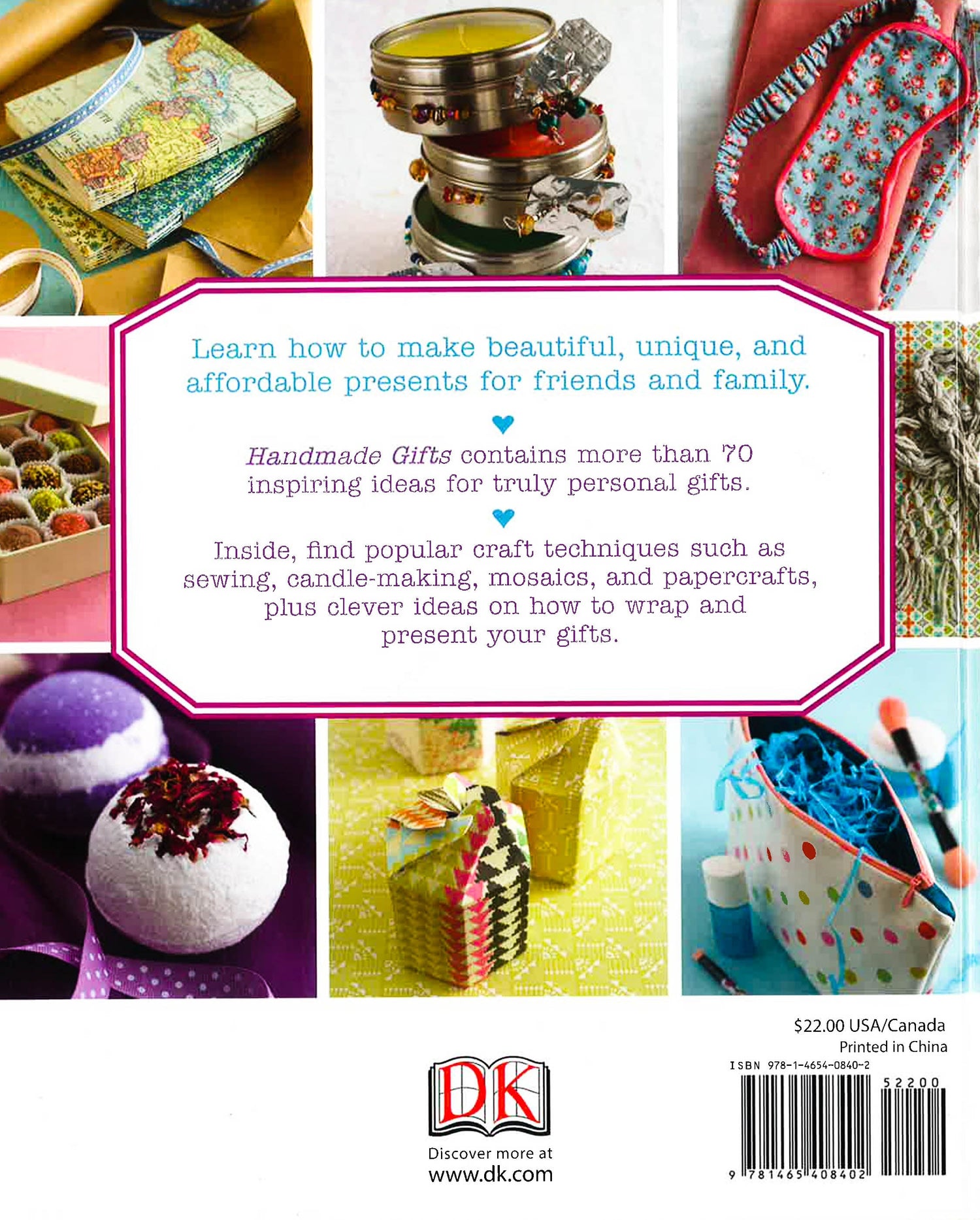 Containing more than 70 projects, from candle making and crocheting to paper-crafts and baking, "Handmade Gifts" is the perfect guide to making handcrafted items that people will love. Each project is clearly explained using simple step-by-step images along with photographs of the finished item and variations on how to make each piece unique. There are even ideas for green and up-cycled gifts.