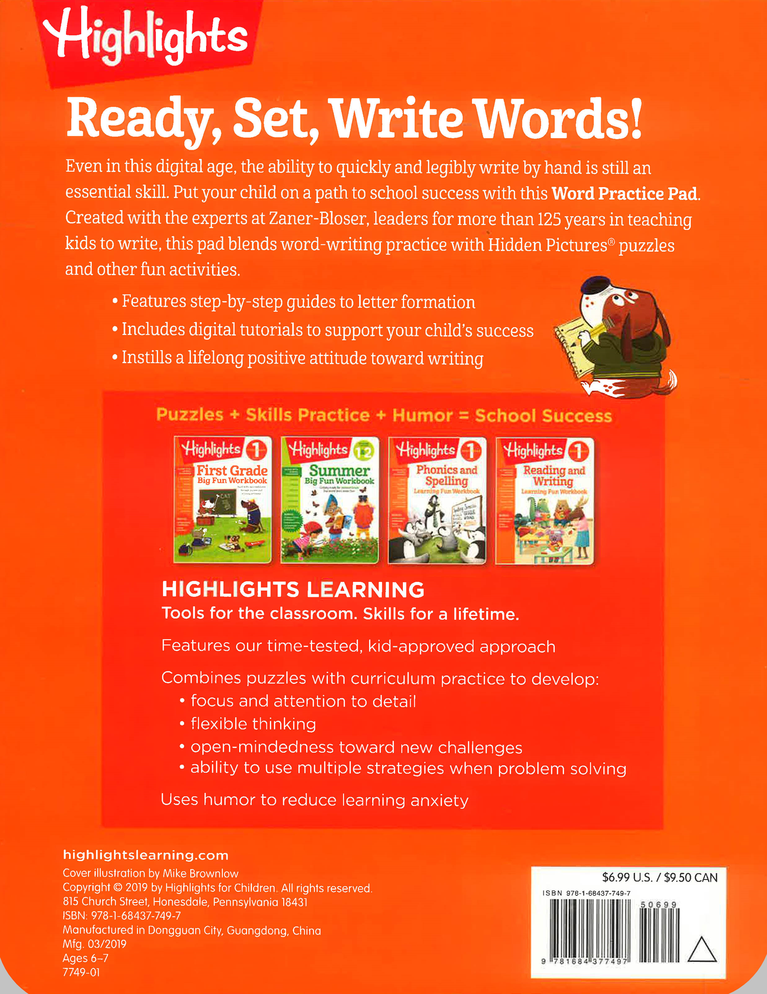 Word-writing practice and activities, including That's Silly!(TM) and Hidden Pictures® puzzles, combine with digital video tutorials in a practice pad developed with handwriting experts Zaner-Bloser aimed to help kids build vocabulary and handwriting skills, as well as lifelong learning confidence and success.