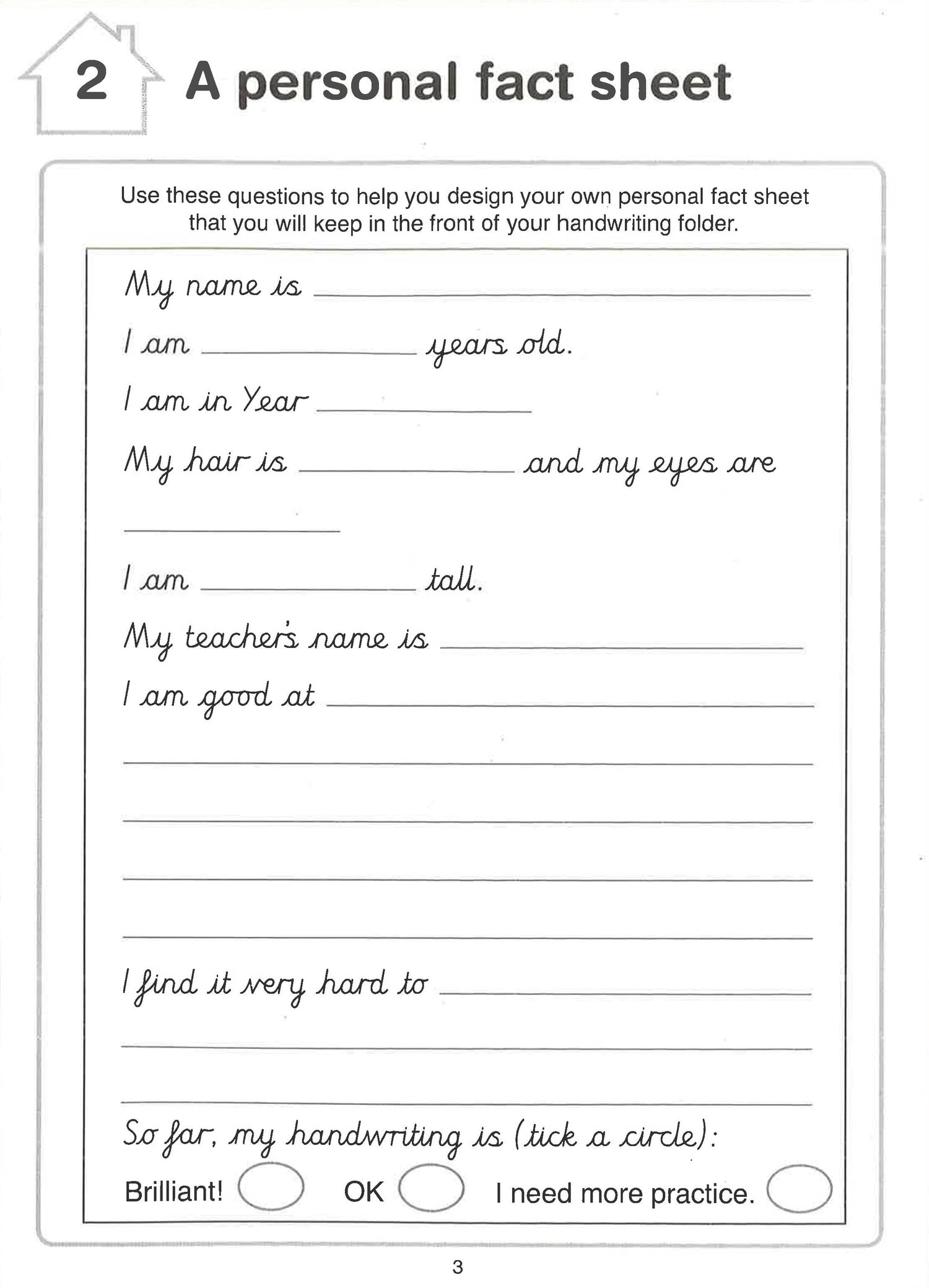 Throughout this workbook, children are introduced to the idea of collating a handwriting folder, and also contains exemplar material to be retained by children in their handwriting folder.