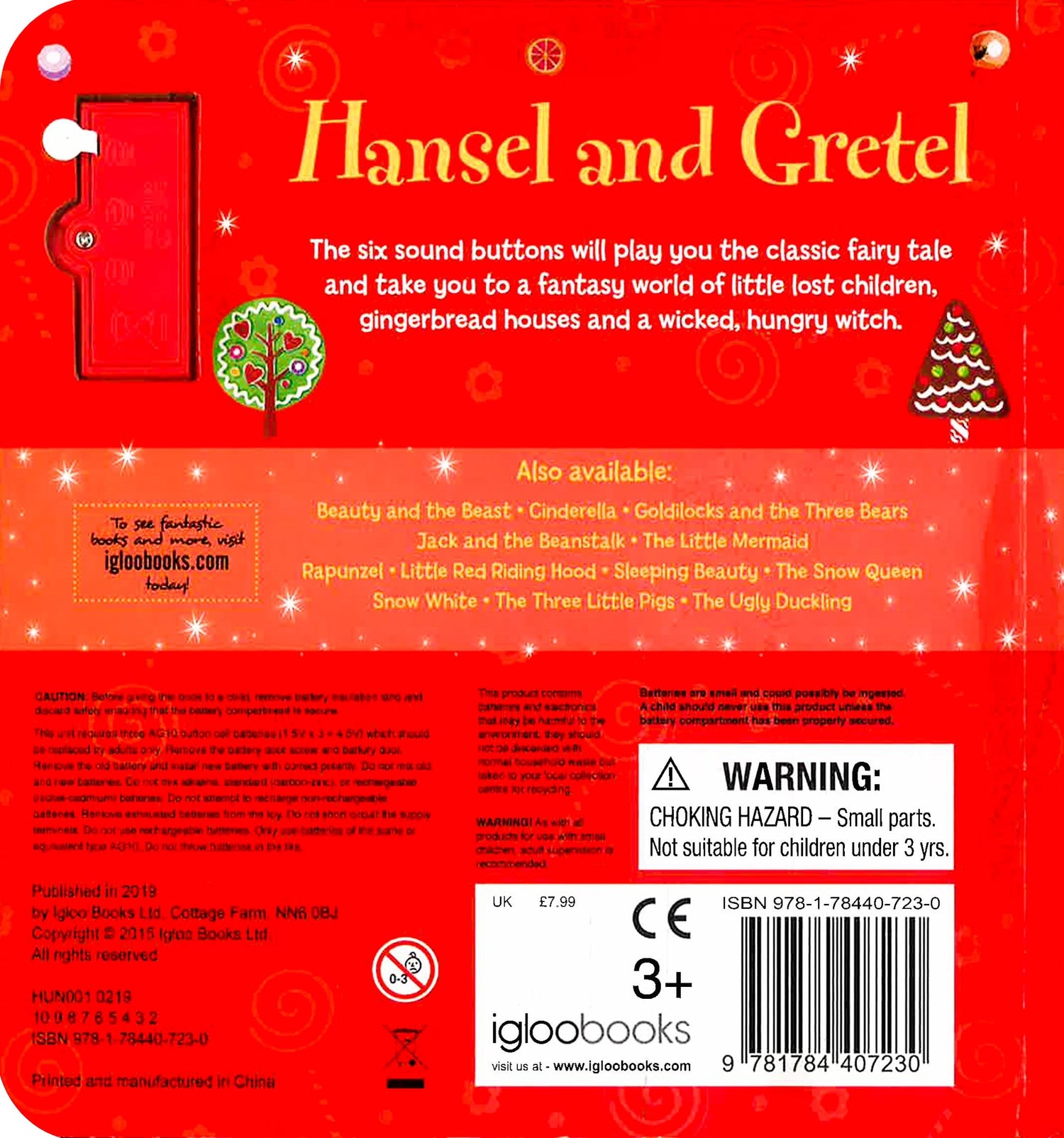 There's nothing better than hearing a good story read out loud. The six sound buttons will play you the classic fairytale and take you to a world of little lost children, gingerbread houses and a wicked, hungry witch.