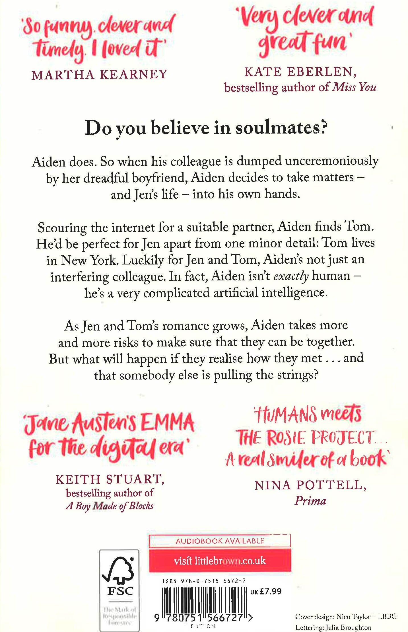Happiness for Humans is a joyful, romantic and very funny story, perfect for readers who loved The Rosie Project and Eleanor Oliphant is Completely Fine. Do you believe in soulmates? Aiden does. So when his colleague, Jen, is dumped unceremoniously by her dreadful boyfriend, Aiden decides to take matters - and Jen's life - into his own hands. Scouring the internet for a suitable partner for Jen, Aiden finds Tom. He'd be perfect for Jen apart from one minor detail: Tom lives in New York. Luckily for Jen and Tom, Aiden's not just an interfering colleague. In fact, Aiden isn't exactly human - he's a very complicated artificial intelligence. As Jen and Tom's romance grows, Aiden begins to take more and more risks to make sure that they can be together. But what will happen if they realise how they met...and that somebody else is pulling the strings?