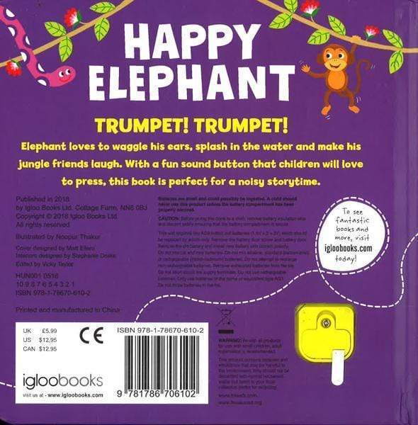 Elephant loves to waggle his ears, splash in the water and make his jungle friends laugh. With a fun sound button that children will love to press, this book is perfect for a noisy Storytime.