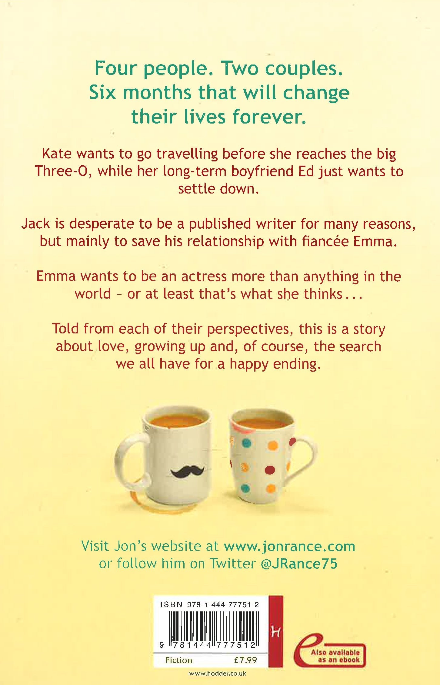 A novel about people just like us. Four people. Two couples. Six months that will change their lives forever. Kate wants to go travelling before she reaches the big Three-O, while her long-term boyfriend Ed just wants to settle down. Jack is desperate to be a published writer for many reasons, but mainly to save his relationship with fiancee Emma. Emma wants to be an actress more than anything in the world, or at least that's what she thought until she finds out she's pregnant. Told uniquely from all of their perspectives, this is a story about love, growing up and, of course, the search for a happy ending. Visit Jon's website at www.jonrance.com or follow him on Twitter @JRance75. You can also email him at jonrance@yahoo.com.