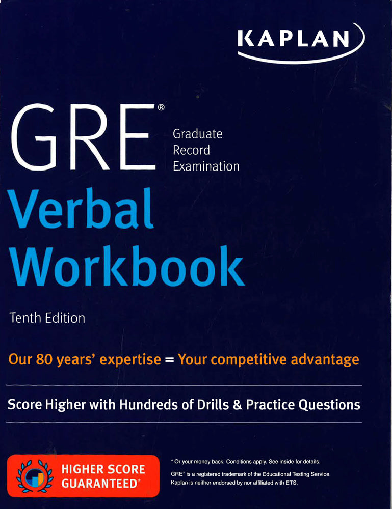 Kaplan's GRE Verbal Workbook provides hundreds of realistic practice questions to help you get comfortable and confident with the Verbal section of the test.The Best PracticeHundreds of realistic questions and drills, including new practice questions for this editionSix full-length Verbal Reasoning practice setsDiagnostic tool for even more targeted Verbal practiceReview of essential skills and concepts, including vocabularyKey strategies for all Verbal Reasoning question types on the revised GREEssay-writing tips and strategies for the Analytical Writing sectionExpert GuidanceWe know the test: The Kaplan team has spent years studying every GRE-related document available to ensure our practice materials are true to the testOur books and practice questions are written by veteran GRE teachers who know students-every explanation is written to help you learnWe invented test prep-Kaplan (www.kaptest.com) has been helping students for 80 years, and our proven strategies have helped legions of students achieve their dreams
