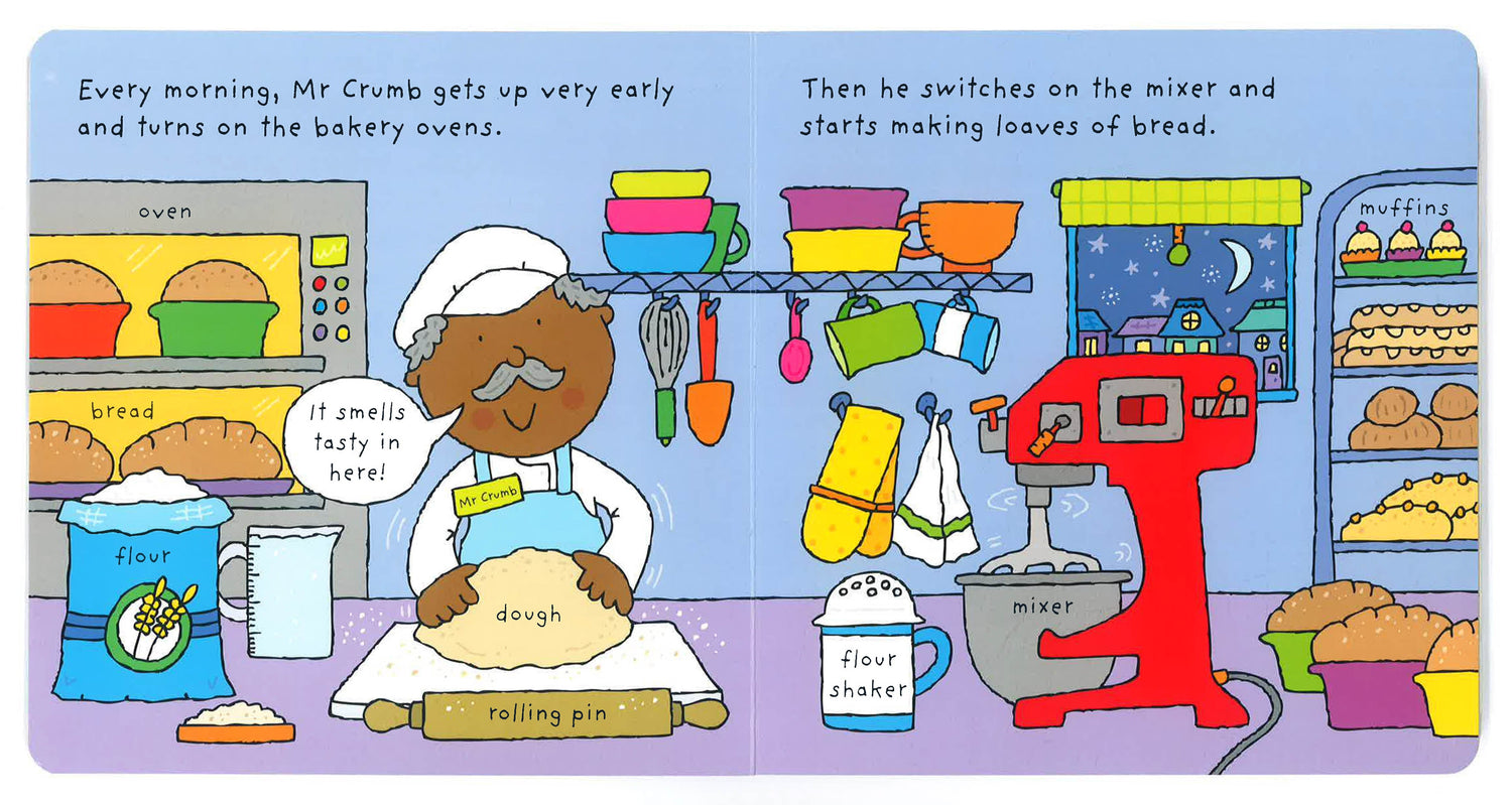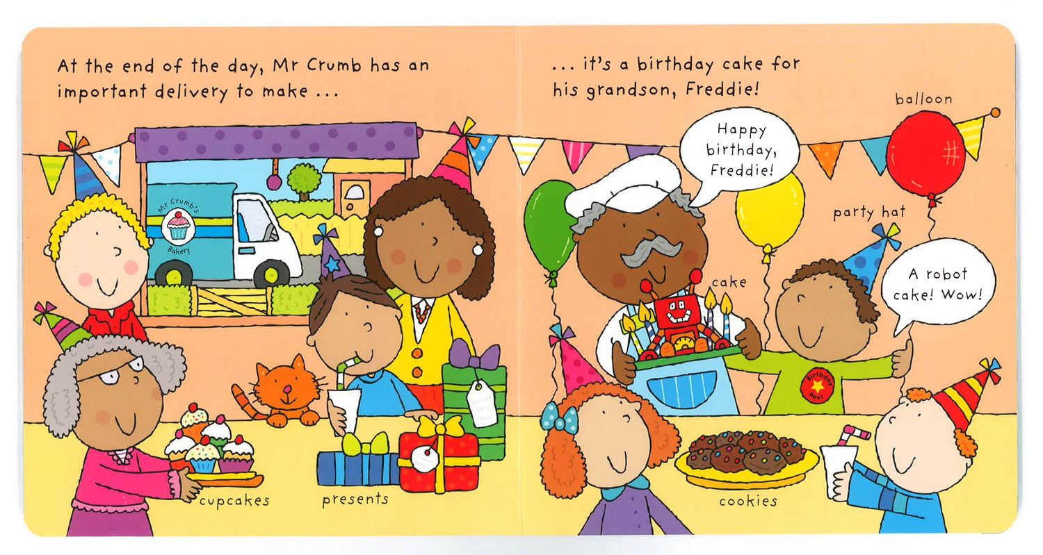 Mr. Crumb wakes up early to bake the tastiest bread. Help him serve his hungry customers. and at the end of the day there's a special treat to deliver. Happy Street is a highly collectible new novelty pre-school series that offers huge possibilities for creative play. Children will love popping out and playing with all the different shops. Each book in the Happy Street series focuses on a different shop?children can pop out the shop and play pieces after they?ve enjoyed the story.