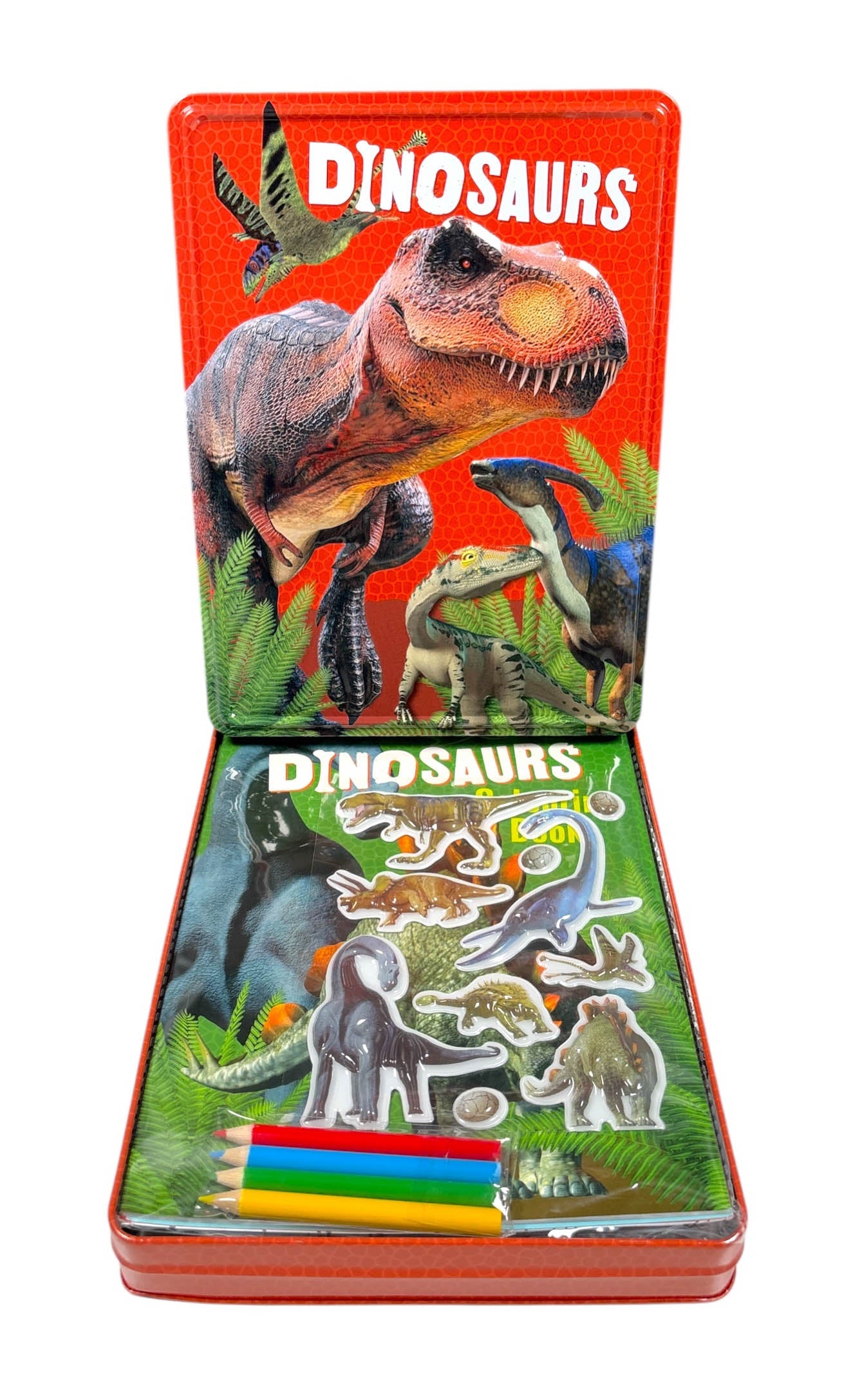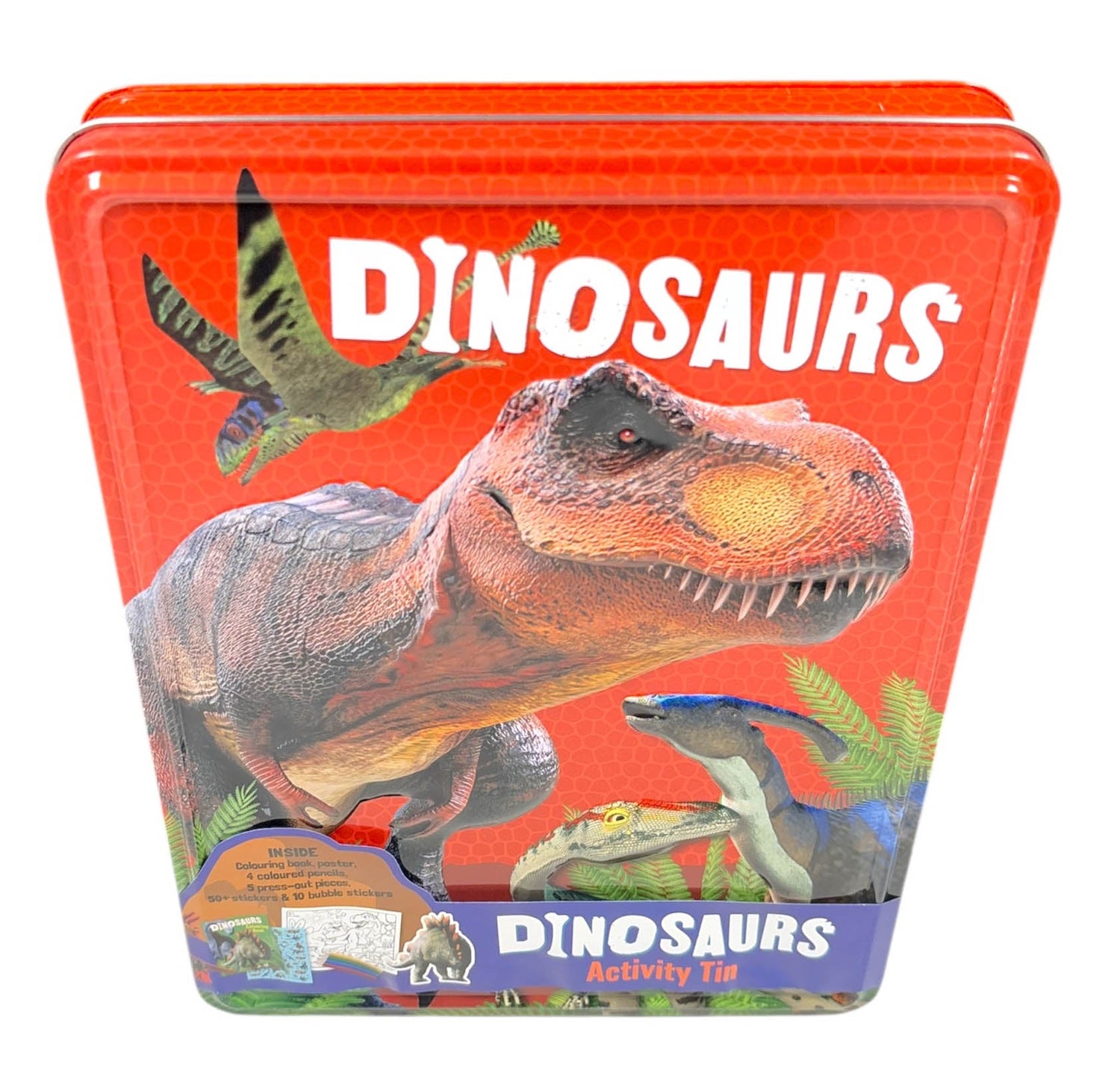 Children will love this exciting tin full of fun things to keep them entertained! Jam-packed in each embossed keepsake tin, children will find a colouring book, press-out play pieces, a sticker sheet with over 50 stickers plus 3D bubble stickers, four pencils and a double-sided poster!
