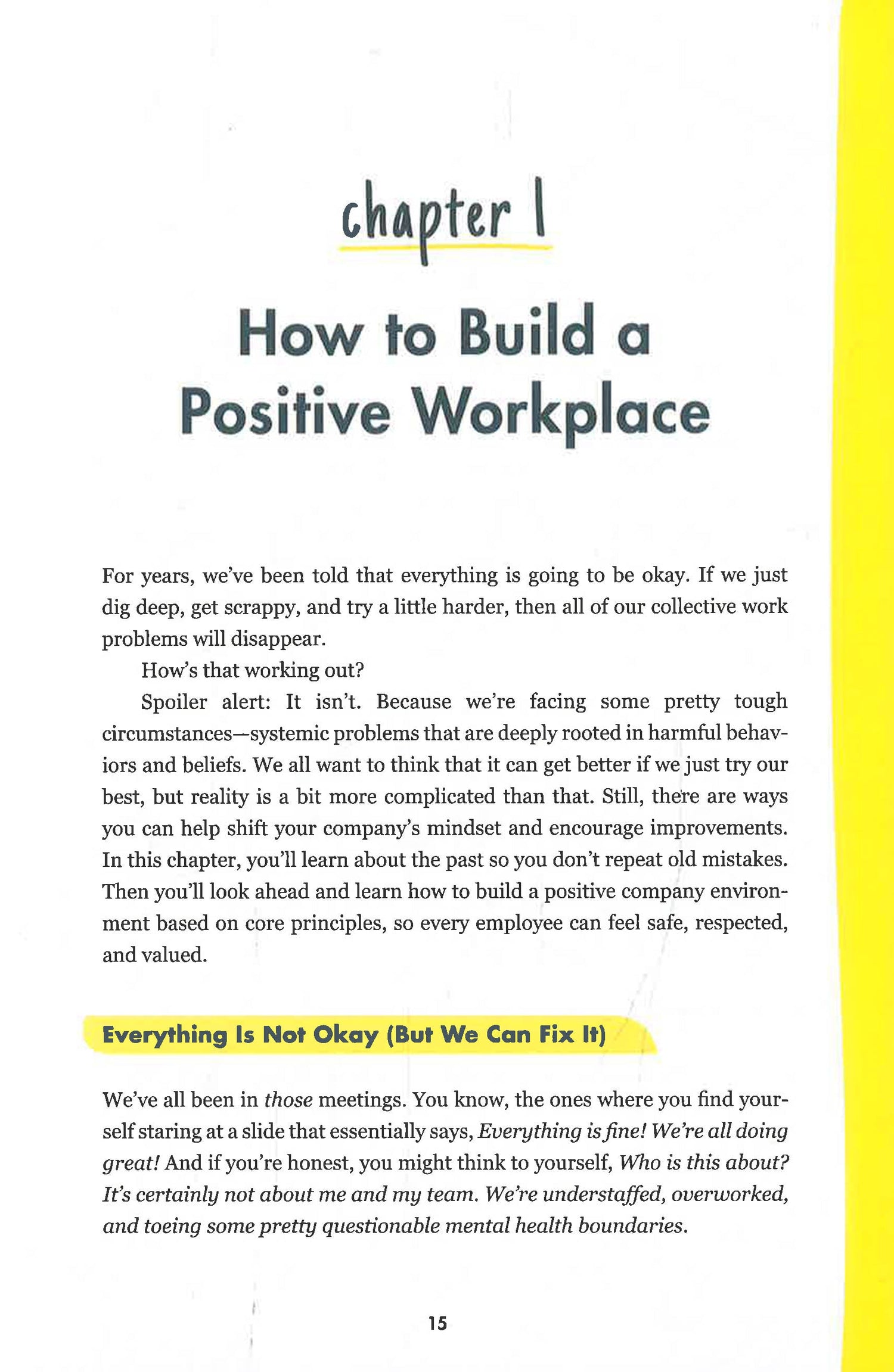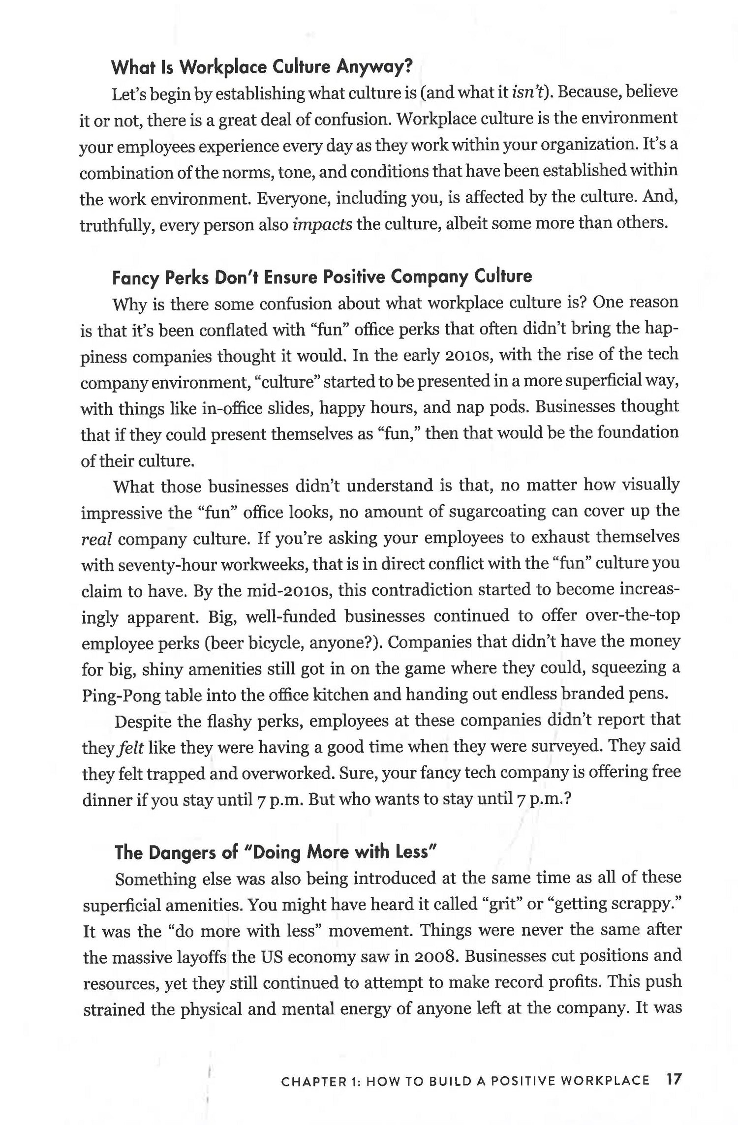 Revamp your workplace culture with these 100 accessible strategies for creating a supportive, flexible, productive, and happy work environment, perfect for managers, human resource representatives, and other workplace leaders.