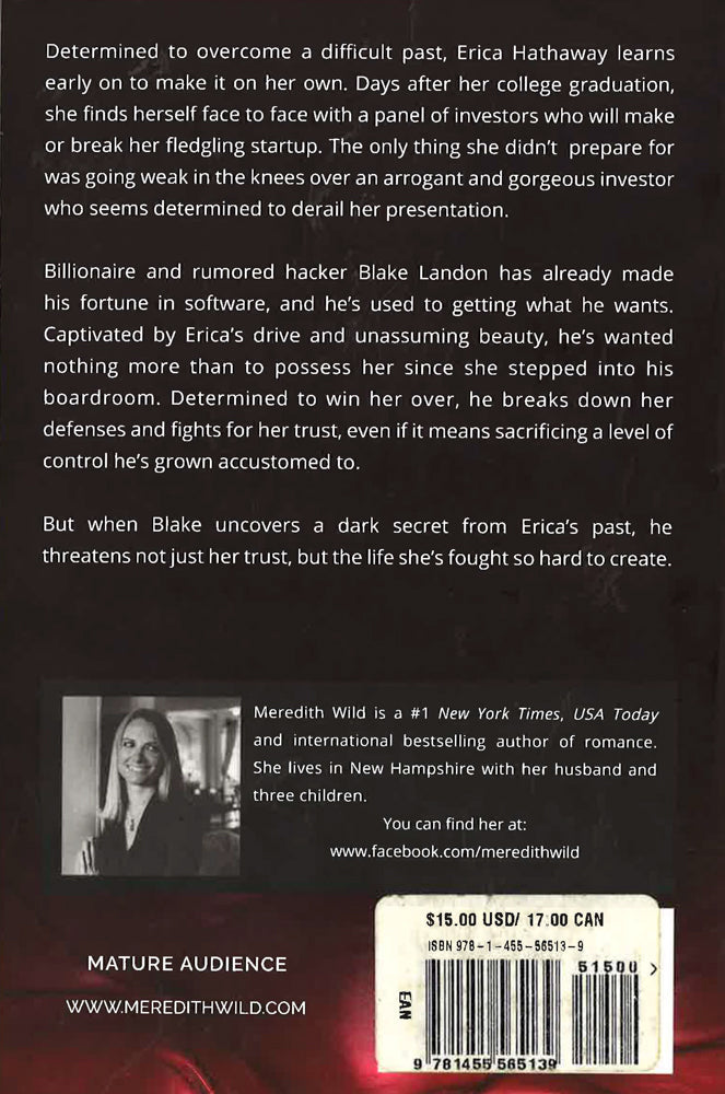 Determined to overcome a difficult past, Erica Hathaway learns early on how to make it on her own. Days after her college graduation she finds herself face to face with a panel of investors who will make or break her fledgling startup. The only thing she didn't prepare for was going weak in the knees over an arrogant and gorgeous investor who's seemingly determined to derail her presentation. Billionaire and rumored hacker Blake Landon has already made his fortune in software, and he's used to getting what he wants with very little resistance. Captivated by Erica's drive and unassuming beauty, he's wanted nothing more since she stepped into his boardroom. Determined to win her over, he breaks down her defenses and fights for her trust, even if that means sacrificing a level of control he's grown accustomed to. But when Blake uncovers a dark secret from Erica's past, he threatens not just her trust, but the life she's fought so hard to create.
