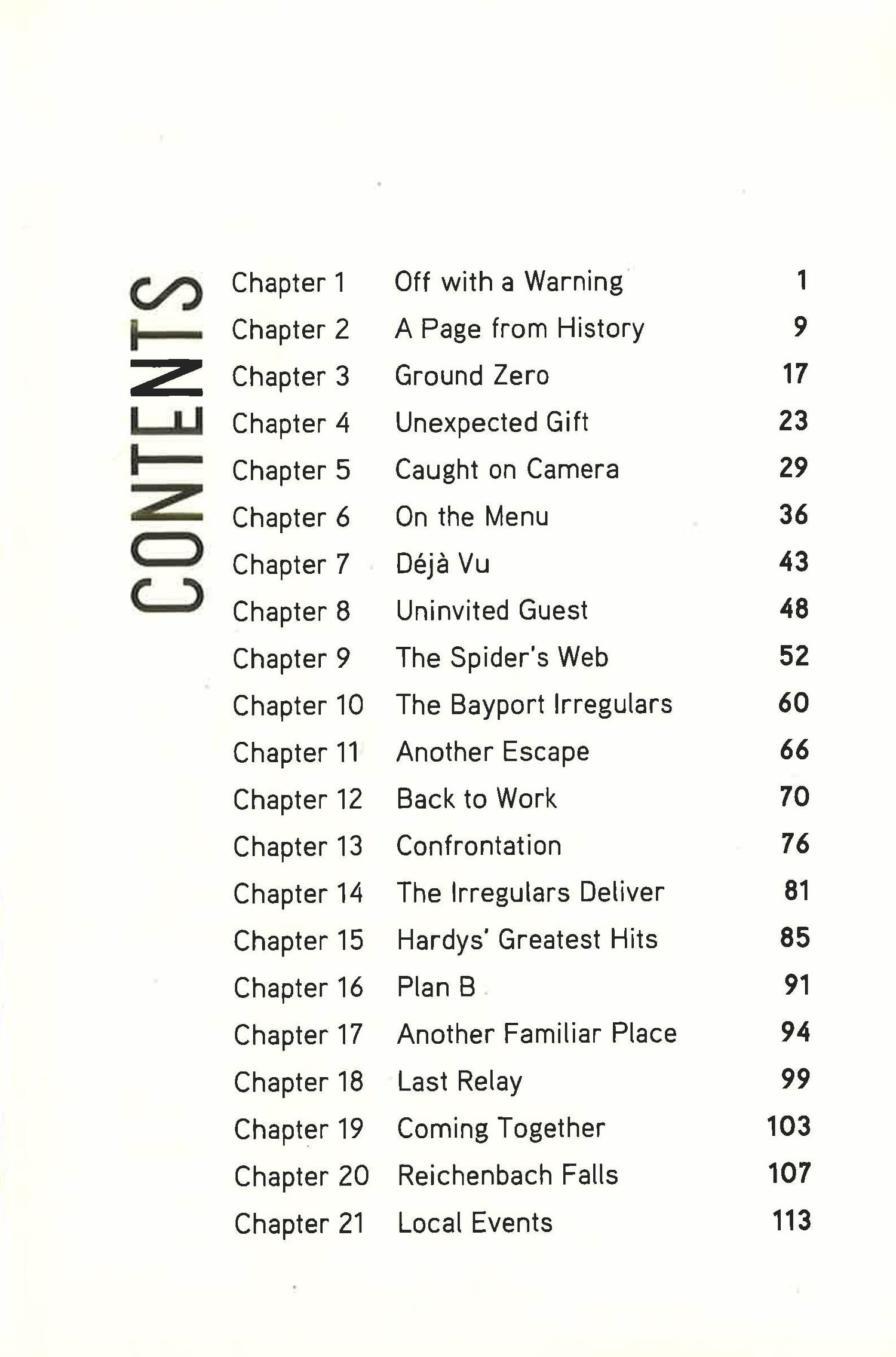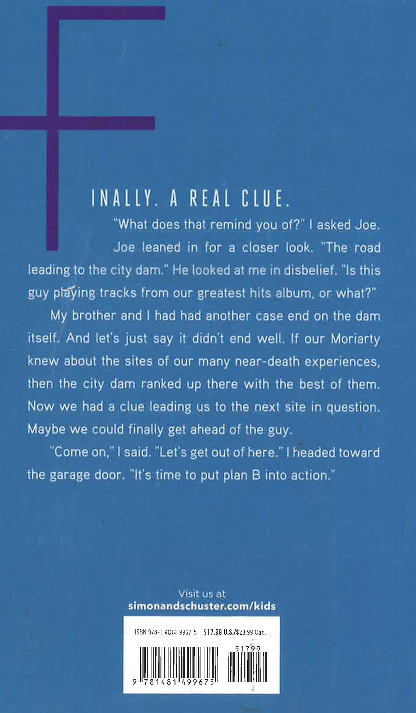 A criminal that seems to be straight out of a Sherlock Holmes novel is out to get brother detectives Frank and Joe in the sixteenth book in the thrilling Hardy Boys Adventures series.An original Sherlock Holmes manuscript was stolen from the Bayport Museum and now pages keep showing up in Frank and Joe’s things: their lockers, menus, even the backseat of their car. It’s clear someone is out to frame them. But who could it be?The boys try their usual means of deduction, but everything leads to a dead end. They just keep finding unsuspecting people who were paid to hide the pages by a mysterious third party. Frank recognizes this tactic - it’s exactly what Moriarty would do to throw off Sherlock Holmes. So the brothers decide to use one of Sherlock’s signature ideas: The Baker Street Irregulars. Though instead of street kids, Frank and Joe use a group of skateboarding tweens to keep their eyes and ears open around town.It’s a battle of wits as the brother detectives try to clear their name. But this Moriarty wannabe always seems to be one step ahead. Can the Hardy boys find the real culprit before it’s too late?