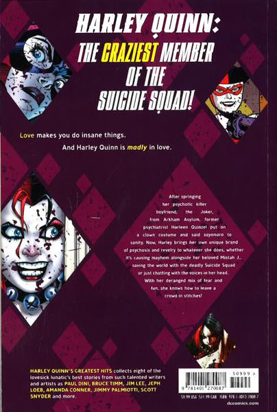 Get an eyeful of Harley's greatest hits from comics including stories from BATMAN ADVENTURES #12 (Harley's first comics appearance!), BATMAN #613, GOTHAM CITY SIRENS #7, SUICIDE SQUAD #1, BATMAN #13, HARLEY QUINN #21, HARLEY QUINN AND THE SUICIDE SQUAD APRIL FOOL'S SPECIAL #1, and the two-page origin of Harley from COUNTDOWN #10 *This book may have remainder mark.