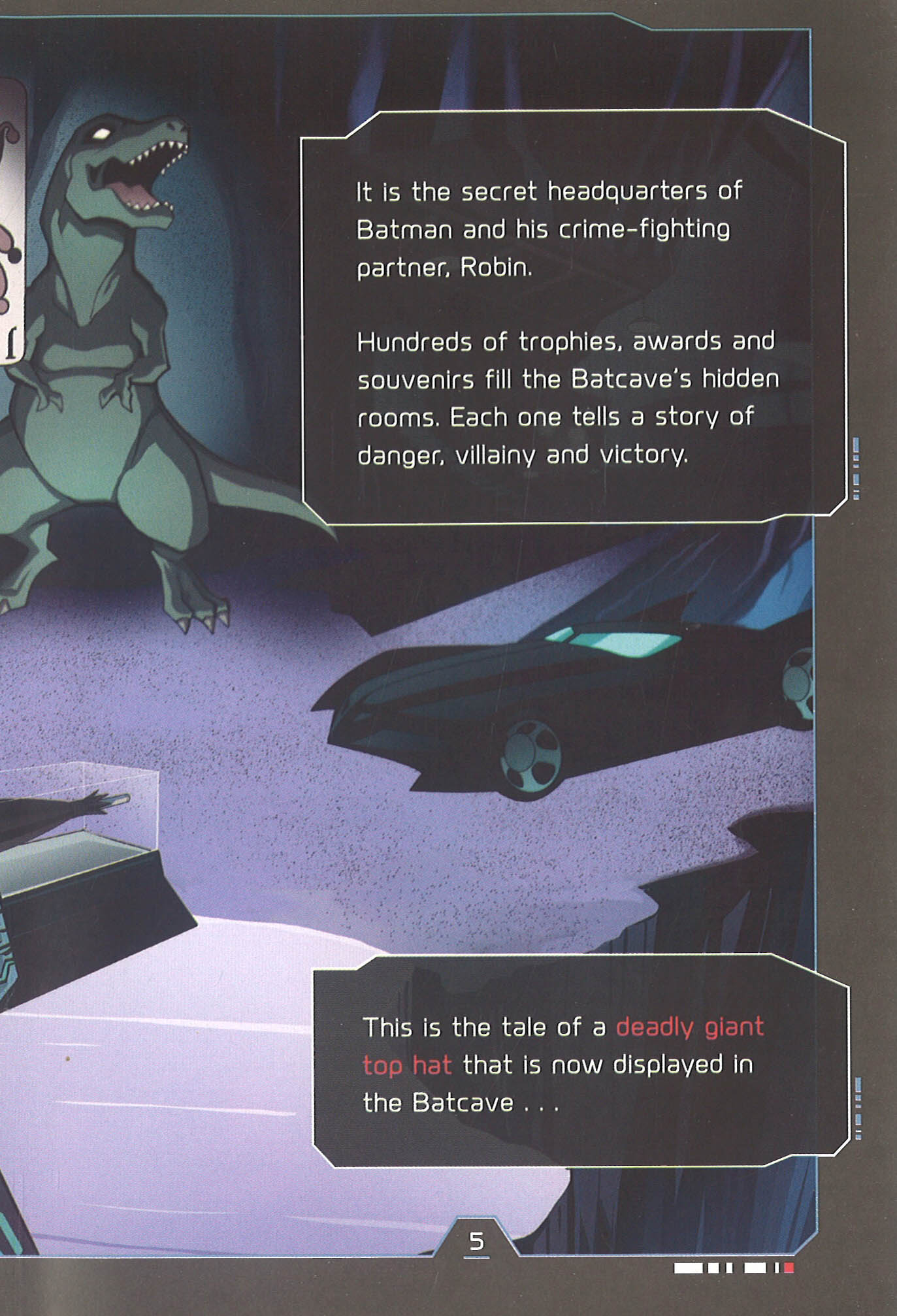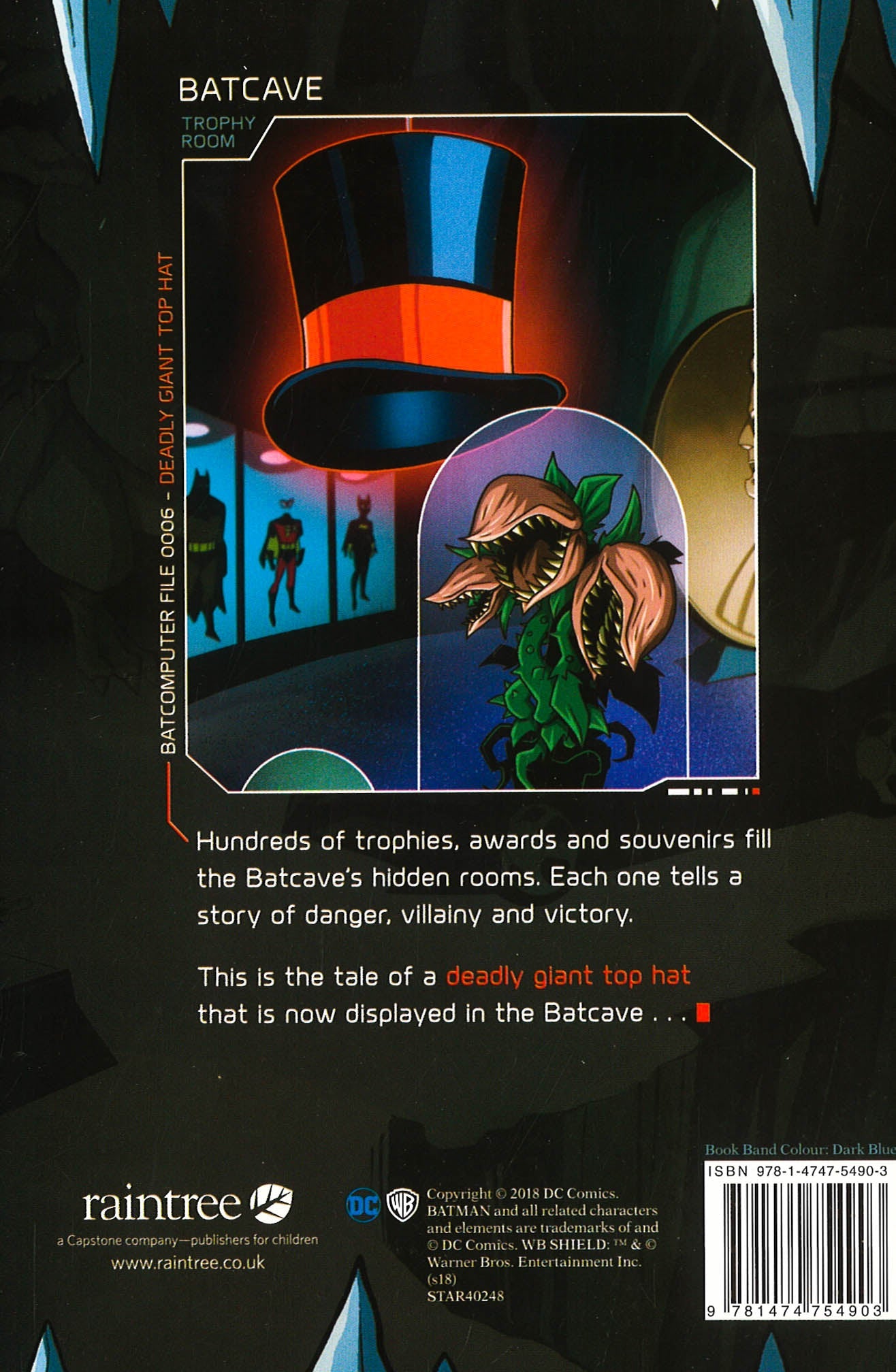 Hundreds of trophies, awards and souvenirs fill the Batcave's hidden rooms. Each one tells a story of danger, villainy and victory. This is the tale of Harley Quinn's giant top hat! And why this trophy now stands in the Batcave . . .