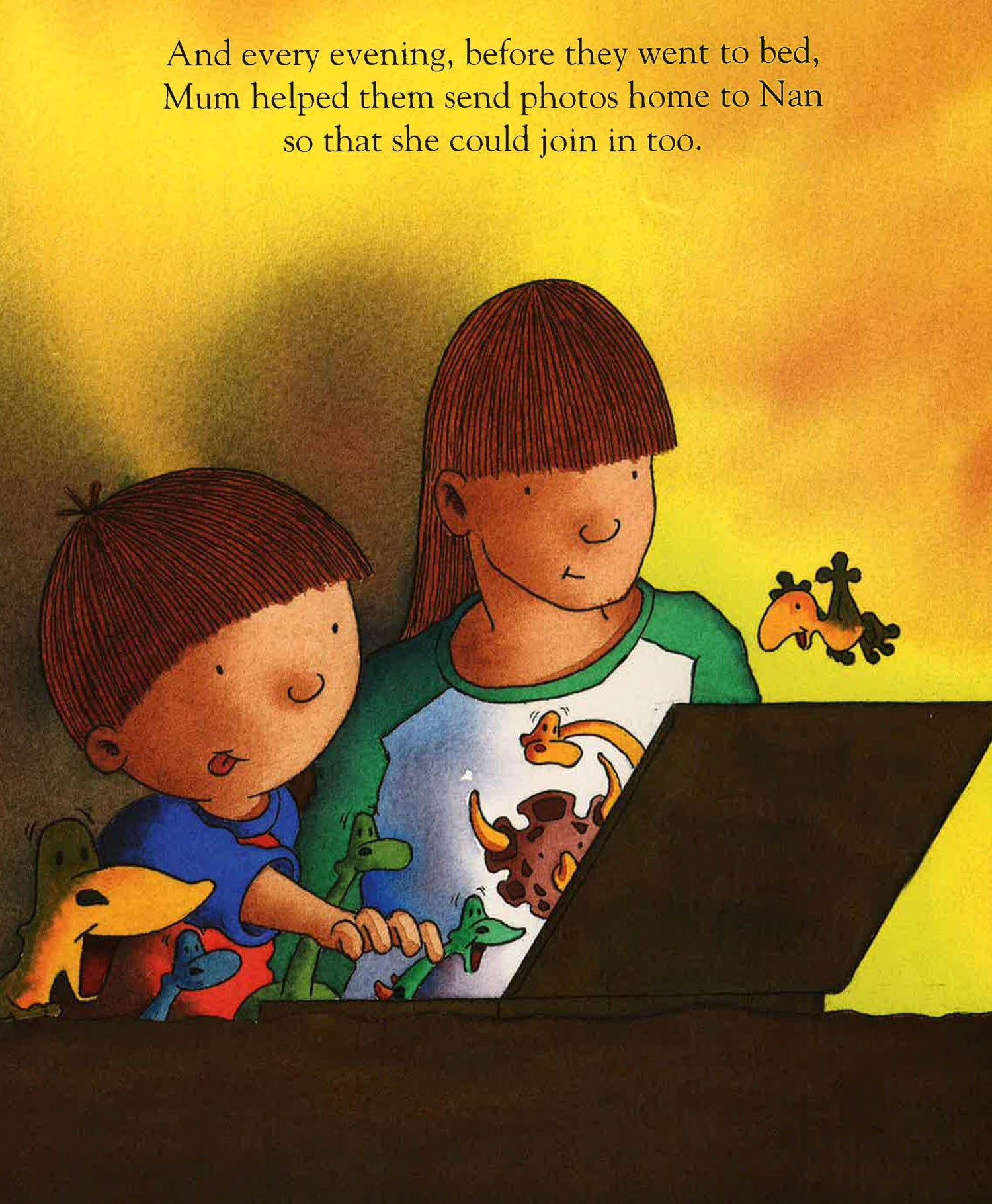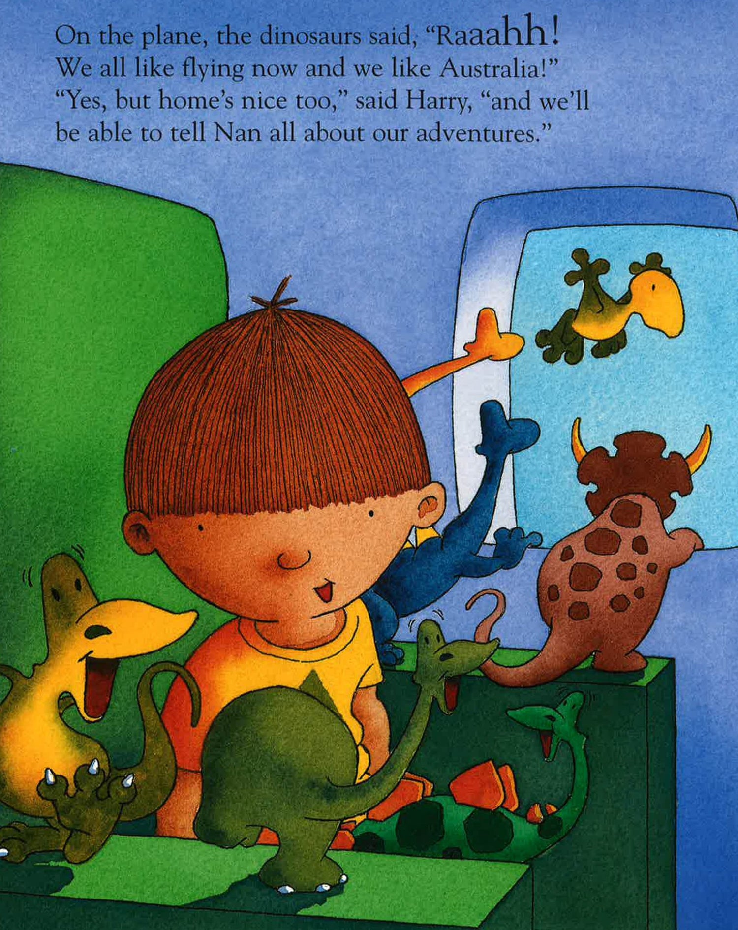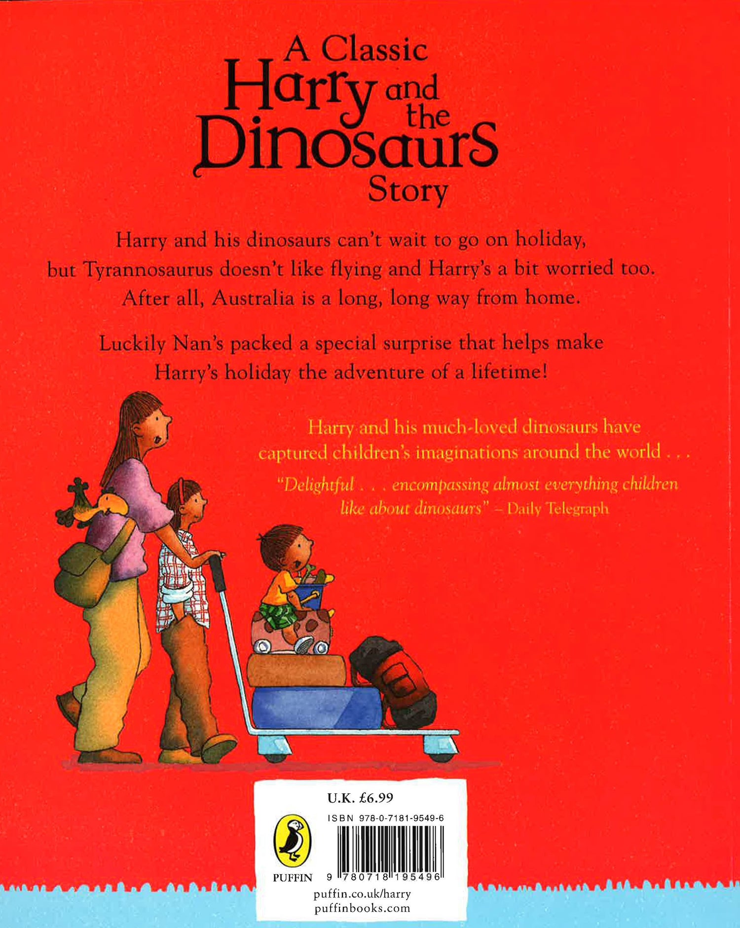 Harry and his bucketful of dinosaurs are going on holiday to Australia and can't wait. But everything is very different down under. There are lots of new sights, sounds and experiences and, without Nan there to comfort them, Harry AND Tyrannosaurus begin to feel a bit homesick. Luckily, a surprise gift makes all the difference and they soon all have a raaah-tastic time!