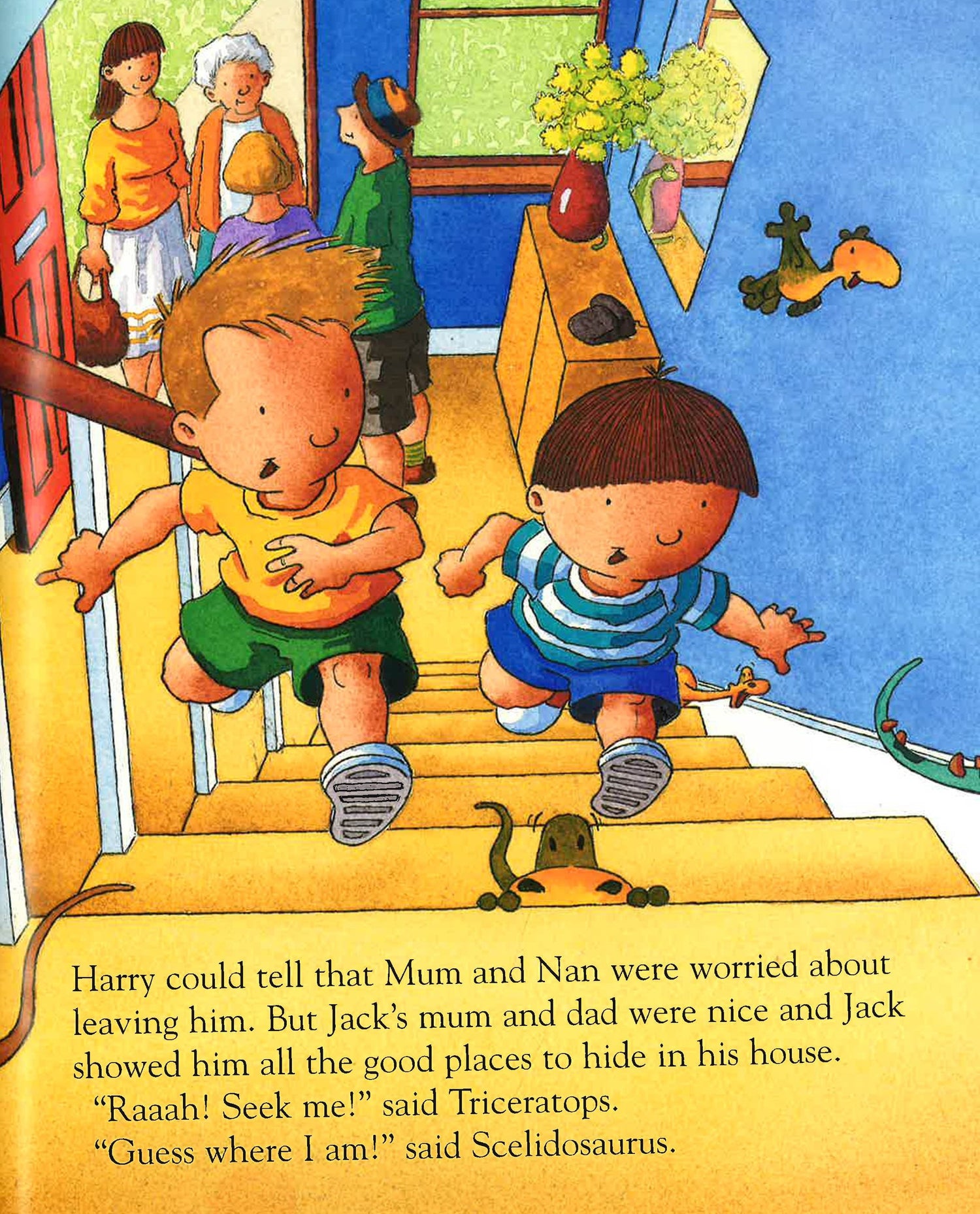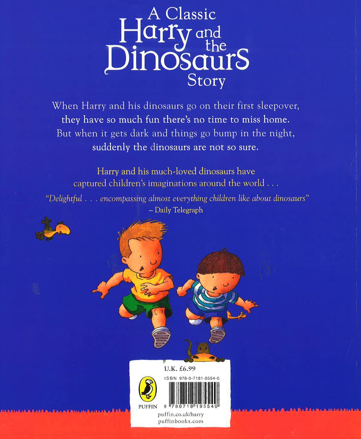 When Harry and his dinosaurs go on a sleepover to Jack's house, they have so much fun there's no time to miss home. But when it gets dark and things go bump in the night, suddenly the dinosaurs are not so sure. Luckily, Harry has his friends to look after him and make sure they all have a roaringly good time.
